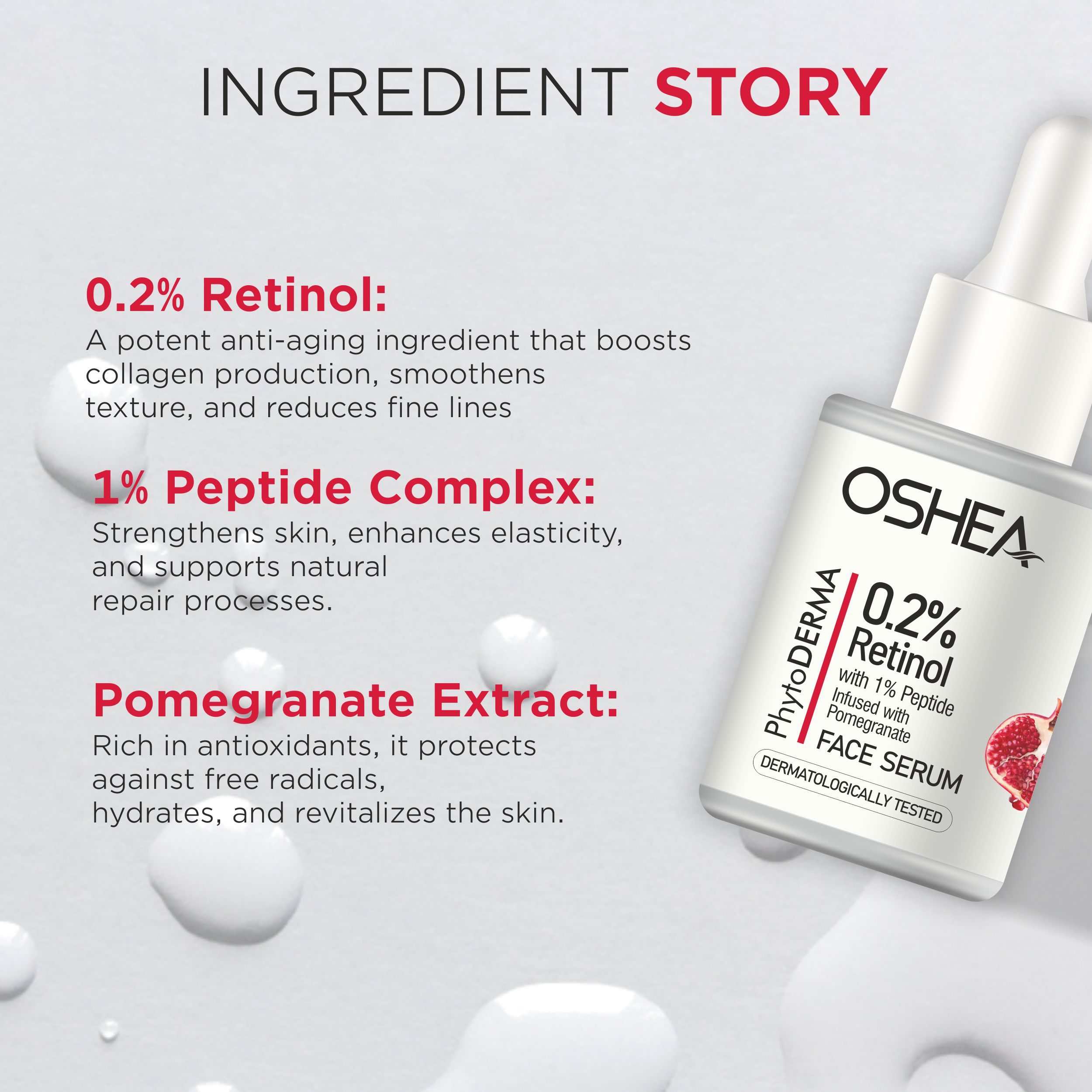 Transform your skin with our 0.2% Retinol Face Serum. Infused with 1% Peptide and pomegranate extract, this lightweight serum helps to promote a radiant and youthful complexion. Daily use supports a visible reduction in fine lines and wrinkles, leaving you with a rejuvenated and healthy glow.