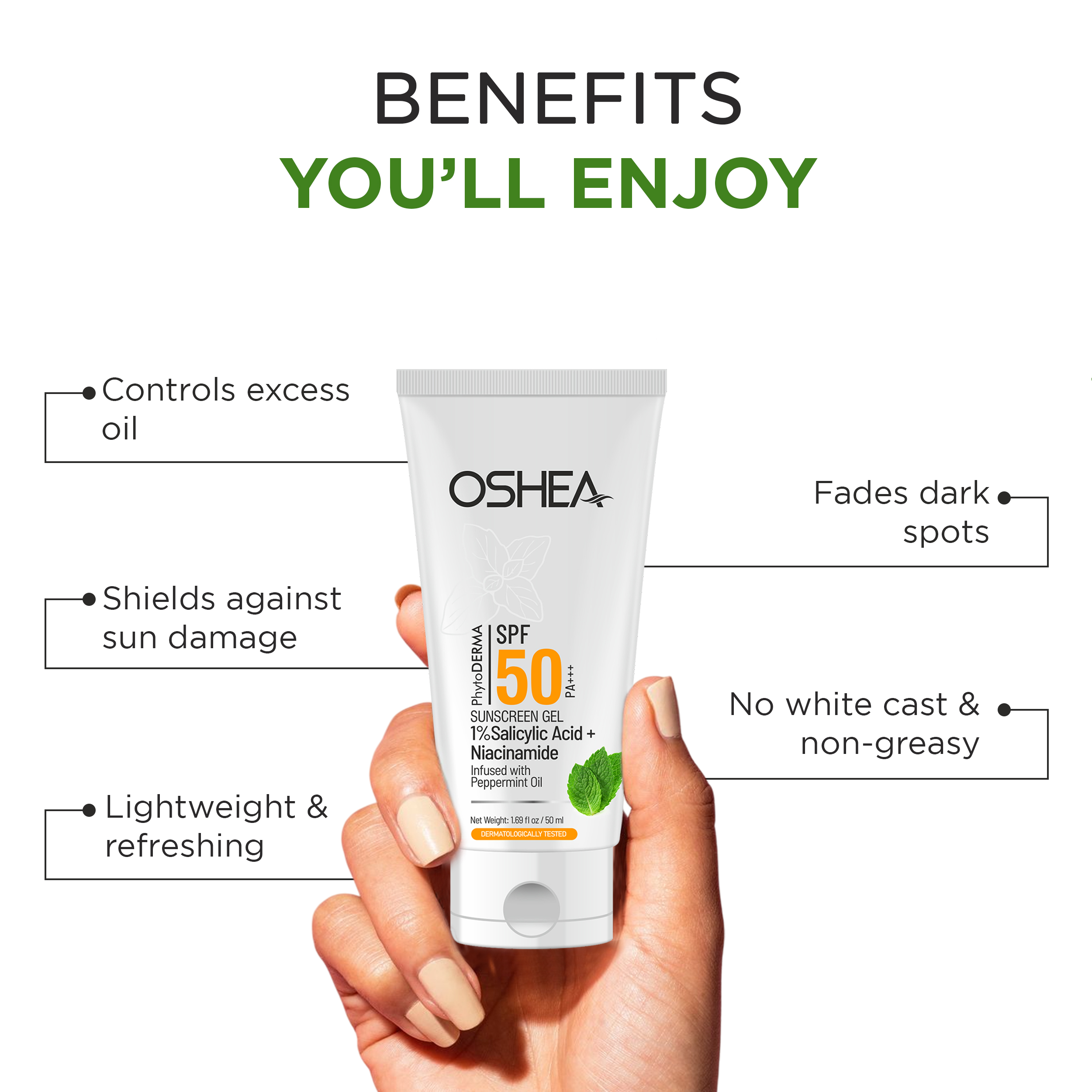 - Salicylic Acid, Niacinamide, Peppermint Oil