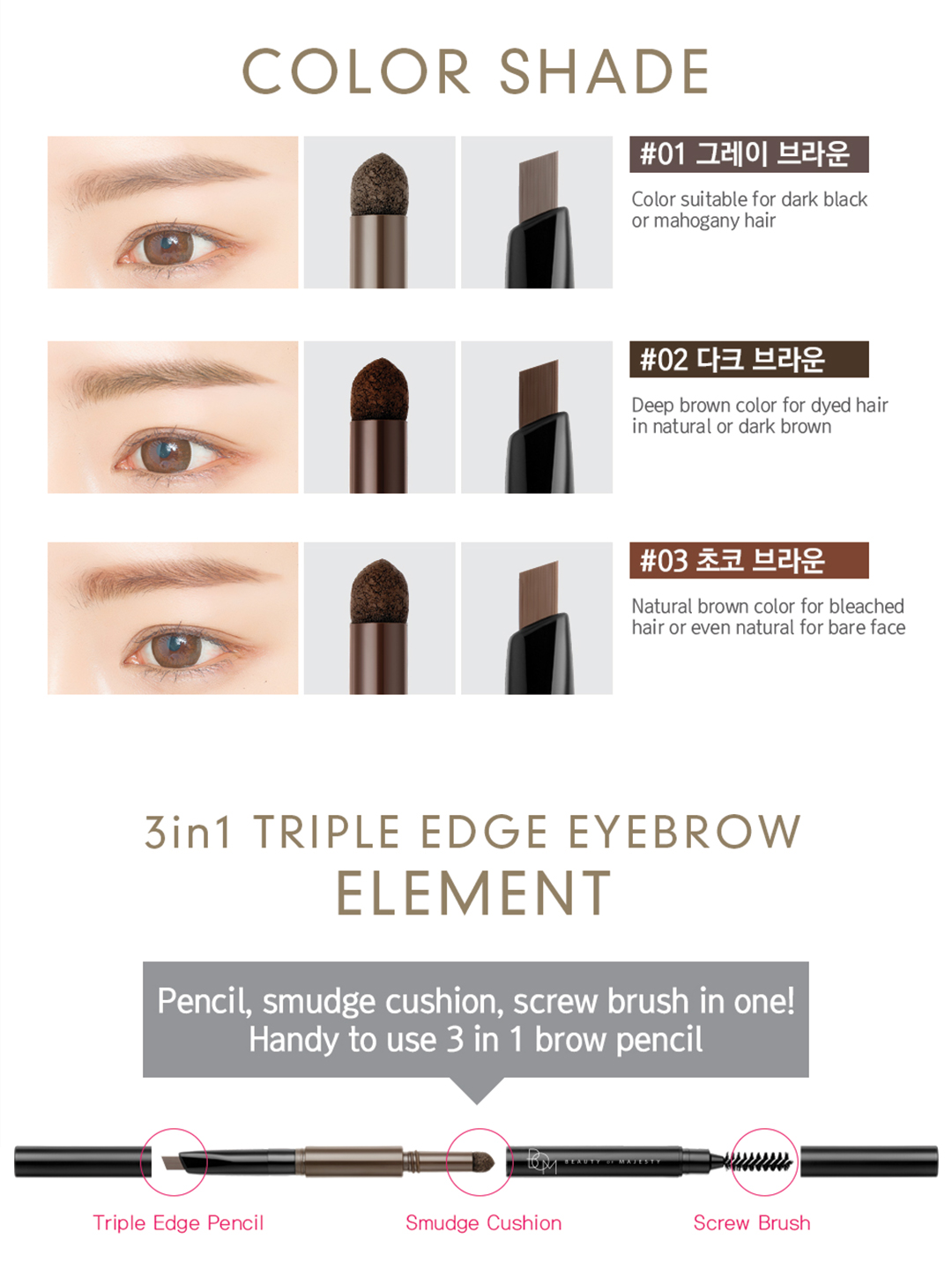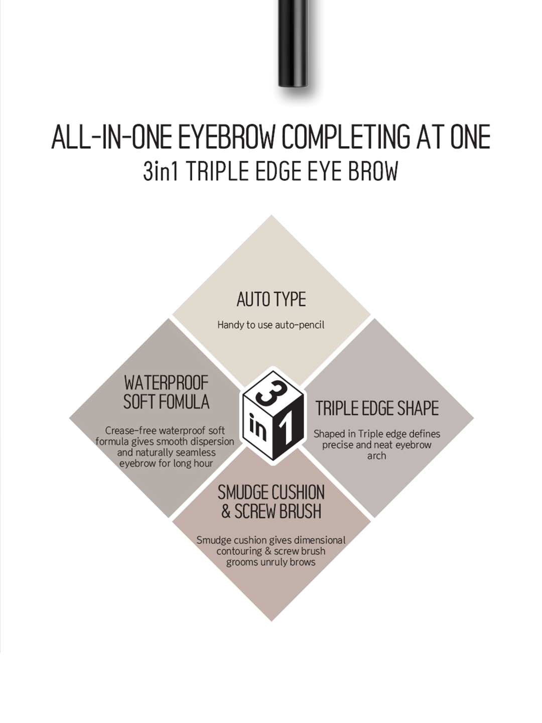 3in1 TRIPLE EDGE EYEBROW #03 CHOCO BROWN combines three essential tools in one for effortless eyebrow perfection. Its fine tip allows accurate outlining, the angled edge fills in sparse areas naturally, and the spoolie brush blends the color for a soft, polished finish. The warm choco brown shade creates a natural, versatile look suitable for various hair colors, ensuring your brows stay perfectly defined and balanced throughout the day.