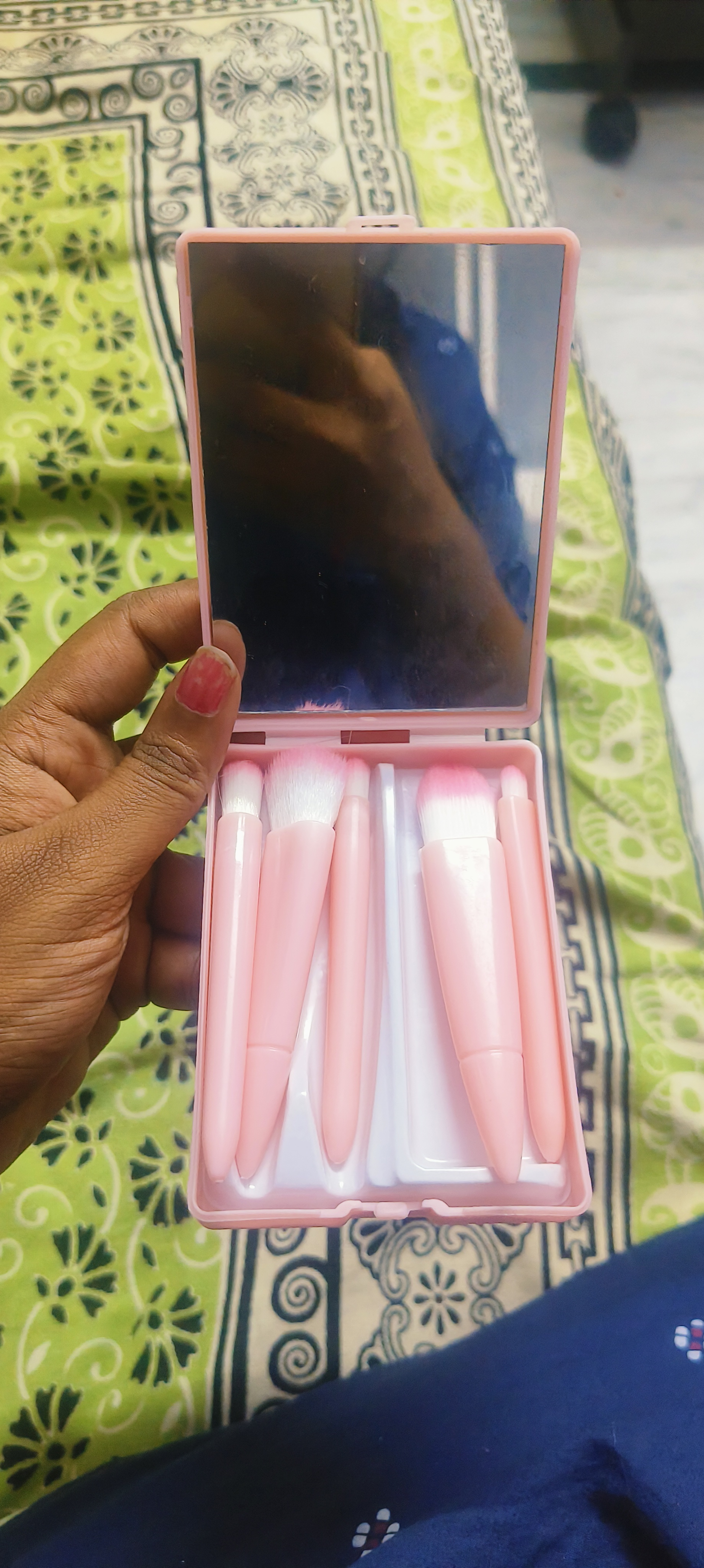 Looking for the perfect beauty companion on the go? This 5-in-1 Mini Makeup Brush Set with Built-in Mirror is designed for modern women and girls who want to look flawless anytime, anywhere. Whether you're traveling, heading to work, or going out with friends, this compact kit has you covered. Crafted with premium synthetic bristles, each brush is ultra-soft, skin-friendly, and ideal for smooth, even makeup application without irritation. From foundation and blush to eyeshadow and powder, achieve a professional finish effortlessly. The sleek storage case comes with a built-in mirror, so you can touch up your look on the move no extra mirror needed. Lightweight, durable, and easy to slip into any purse, clutch, or travel bag.