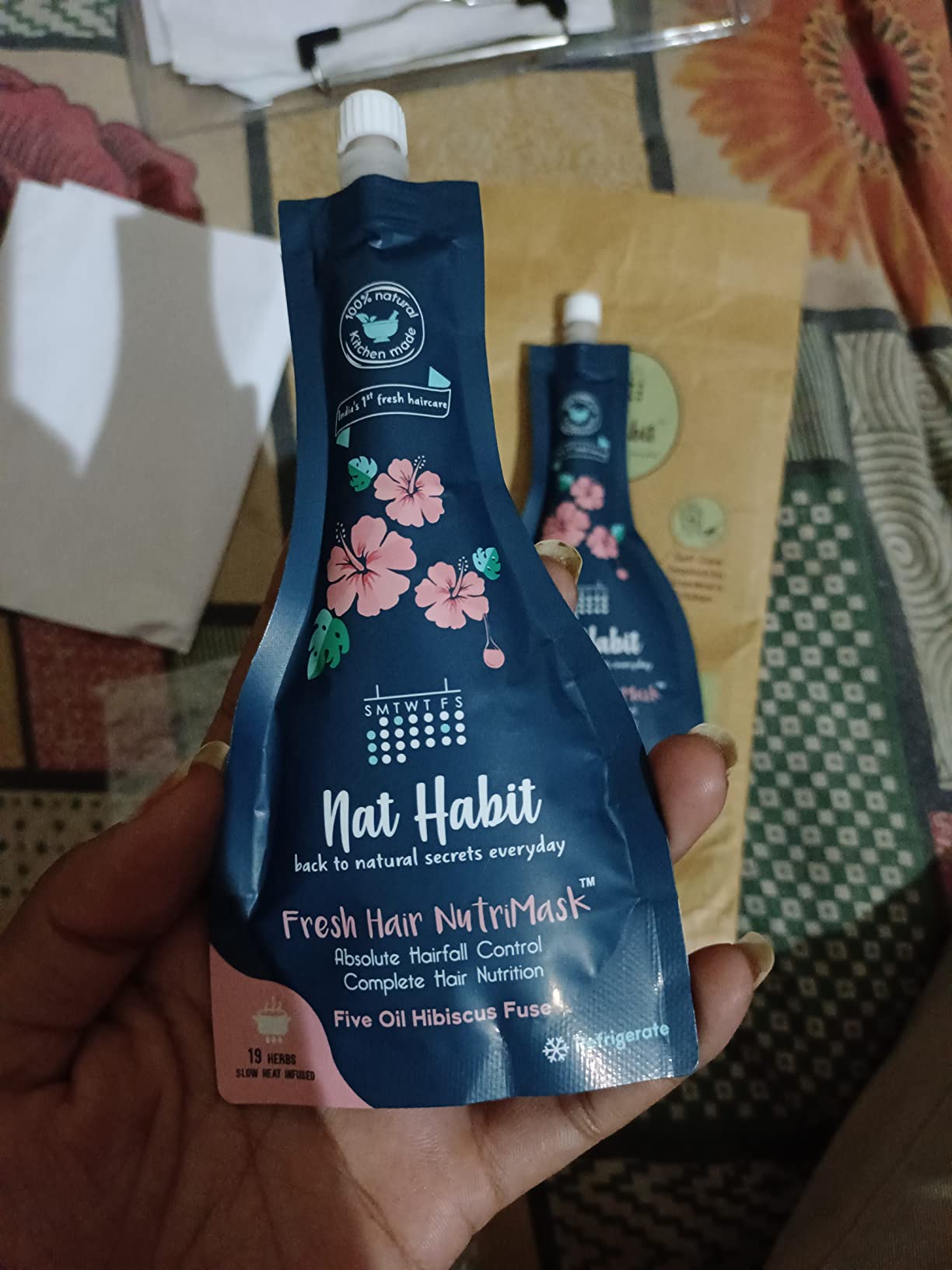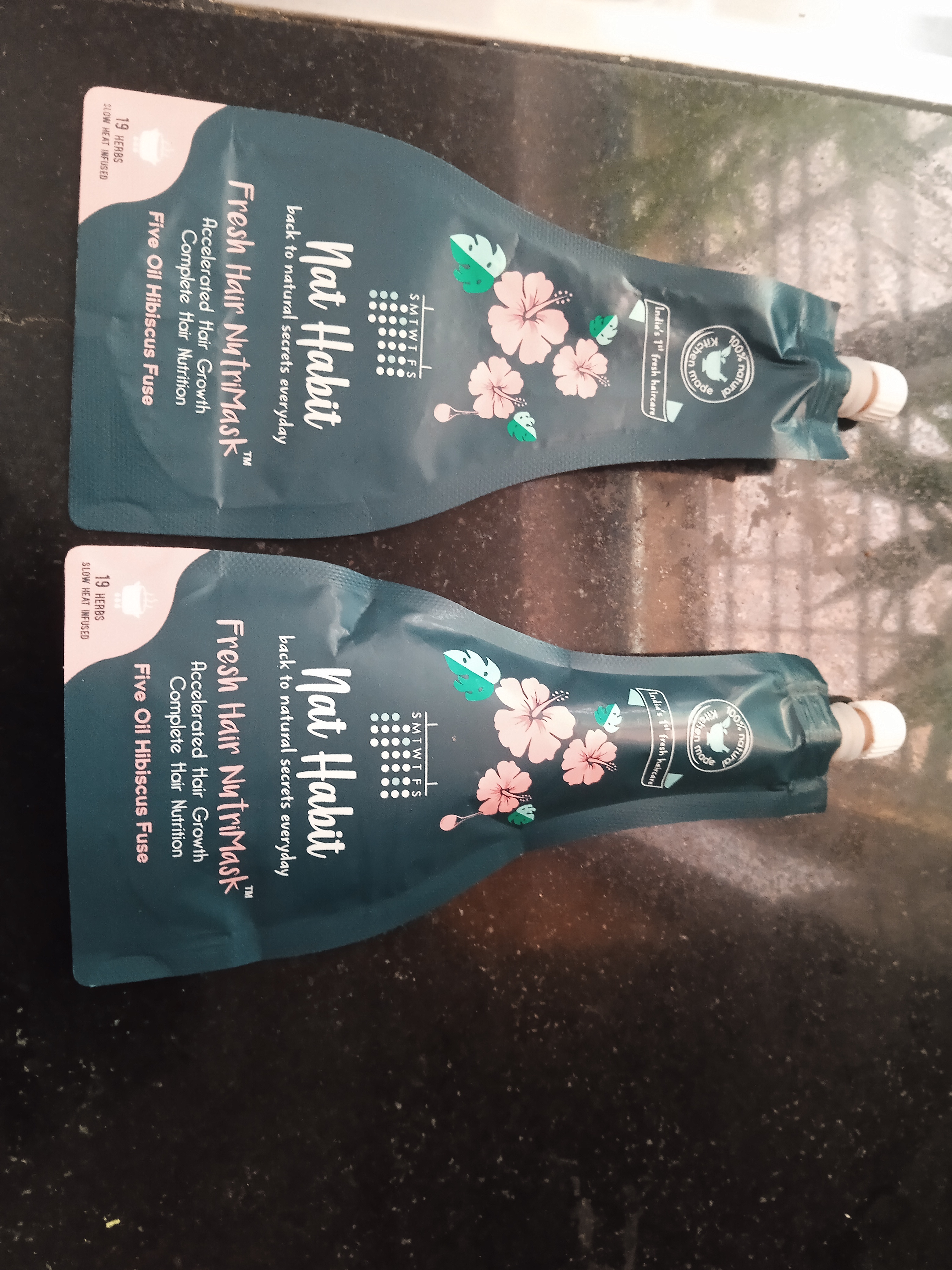It is a good hair mask. The first thing you observe when you squeeze the product is the strong pickle like smell. The only con is the quantity of the product. You get 80 gms product(2 packs) for 280 rs. If you are not travelling, then its better to get a 200 gms tub for the same price.