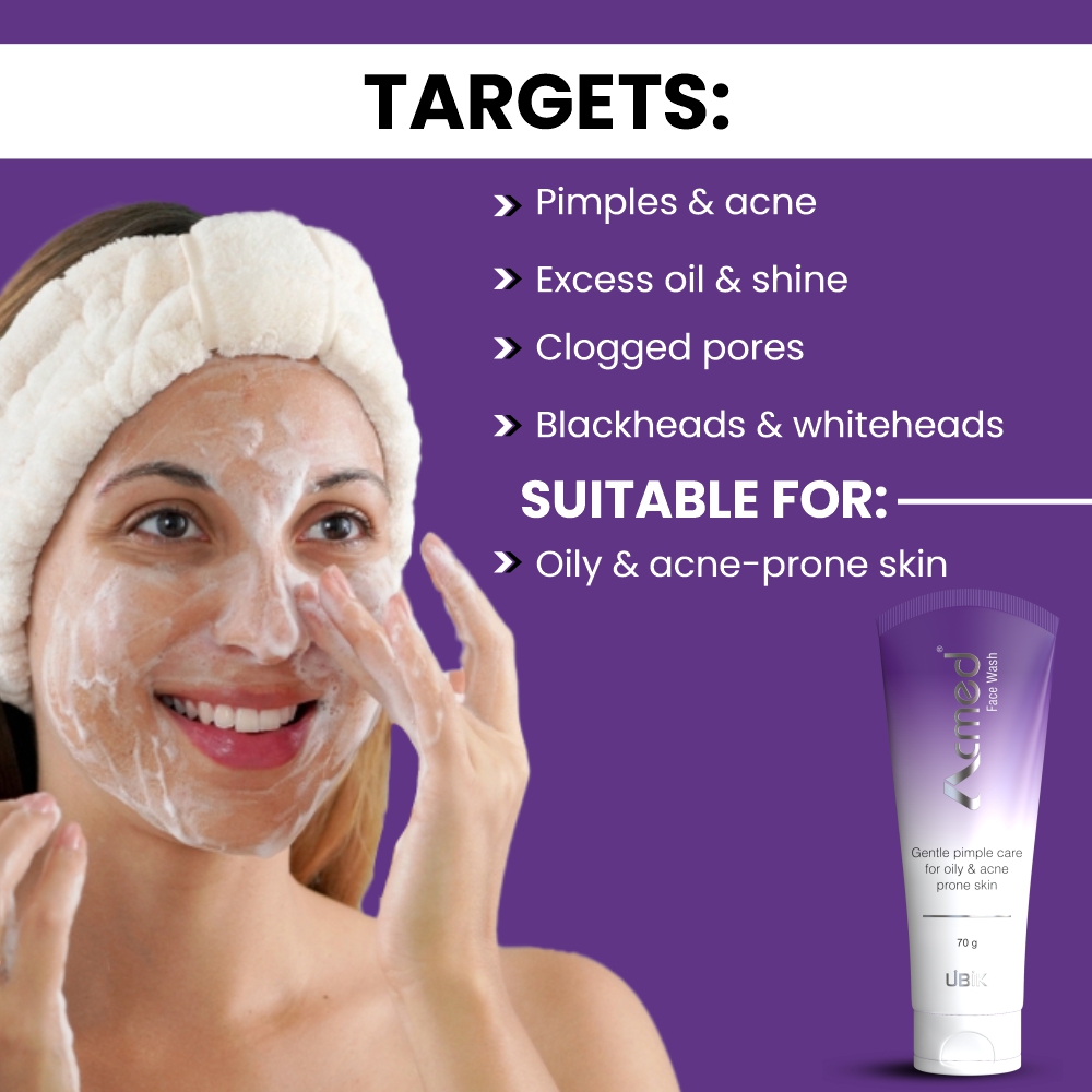 Acmed face wash is used to cure acne which cleanses excess oil, dirt and dead skin. Tea tree oil used in Acmed ensures anti-bacterial action against bacteria common to pimple prone skin. Acmed also has a breakthrough innovation like pimple care globules that you can actually see penetrating in your skin while you wash your face, ensuring proper delivery of pimple care active ingredients. It is available in 70gm pack. Tea tree oil Pro-vitamin B5 Vitamin E Aloevera It has been indicated for the treatment of acne. Direction To Use:-Take a little Acmed with a little water on to your palm. Work up lather and gently massage on your wet face and neck with a circular motion.Rinse off with clear water and pat your face dry. For best results use twice or thrice a day regularly.