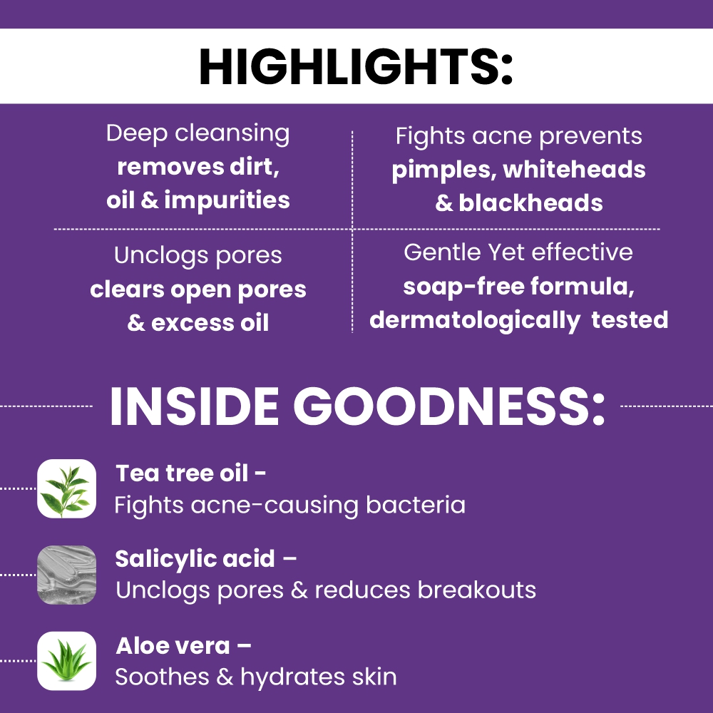 Acmed face wash is used to cure acne which cleanses excess oil, dirt and dead skin. Tea tree oil used in Acmed ensures anti-bacterial action against bacteria common to pimple prone skin. Acmed also has a breakthrough innovation like pimple care globules that you can actually see penetrating in your skin while you wash your face, ensuring proper delivery of pimple care active ingredients. It is available in 70gm pack. Tea tree oil Pro-vitamin B5 Vitamin E Aloevera It has been indicated for the treatment of acne. Direction To Use:-Take a little Acmed with a little water on to your palm. Work up lather and gently massage on your wet face and neck with a circular motion.Rinse off with clear water and pat your face dry. For best results use twice or thrice a day regularly.