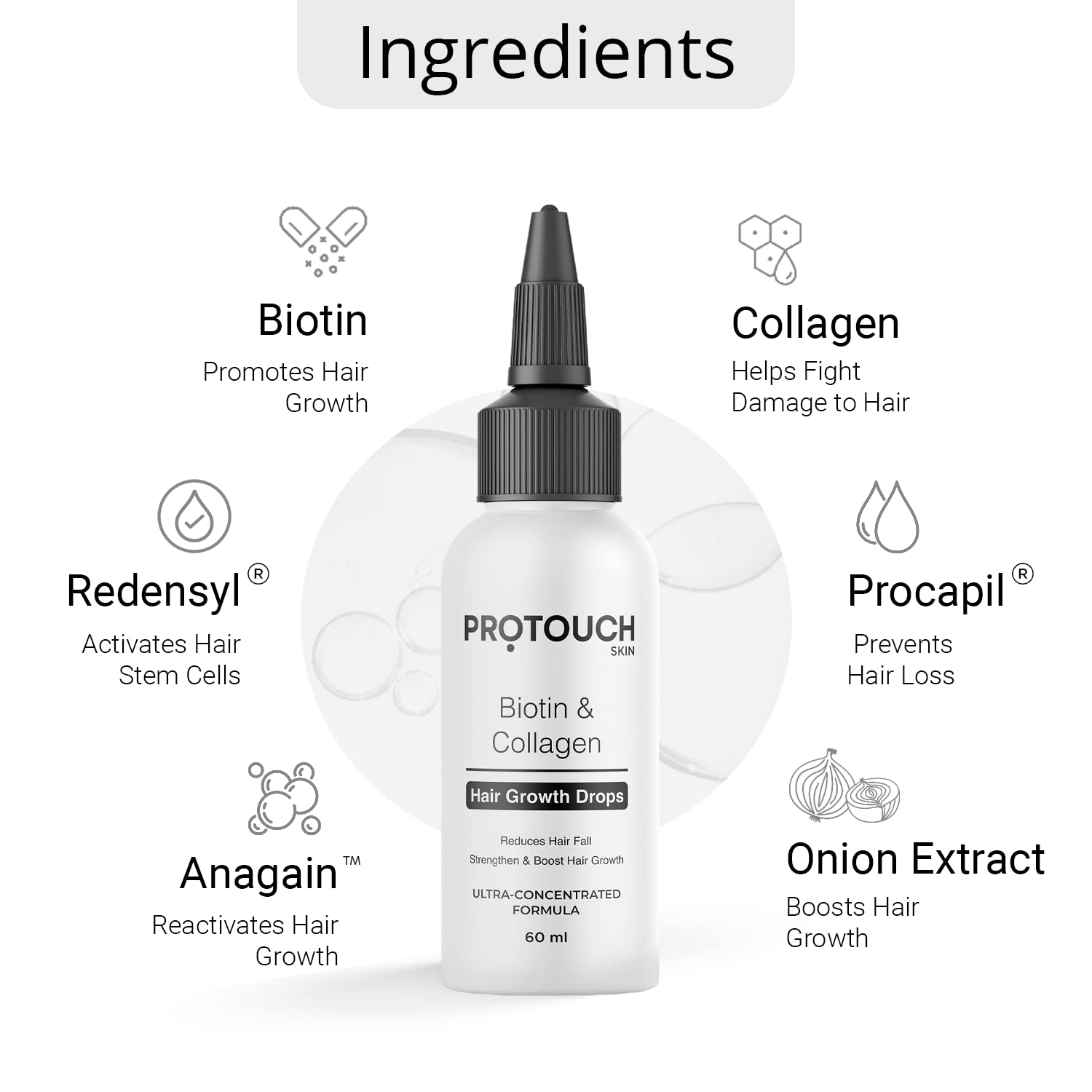 Protouch Advanced Biotin & Collagen Hair Growth Serum with Redensyl, Anagain, Procapil, and Onion Extract for Men & Women - Promotes Hair Growth, Controls Hair Fall - All Hair Types |60ml | Pack of 2
