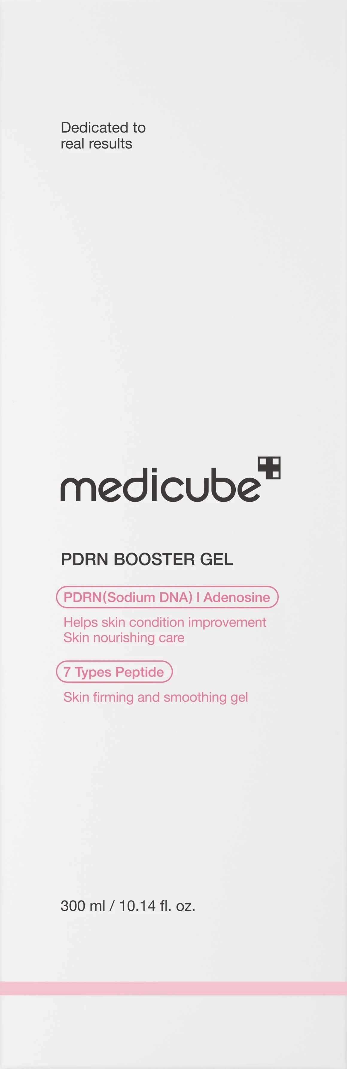 Experience revitalized, lifted skin with the medicube Age-R PDRN Booster Gel (300 ml). Melting seamlessly into the skin, this lightweight facial gel delivers a calming effect while enhancing firmness and outer-skin glow. Powered by salmon PDRN to support skin renewal and soothe stressed skin, and enriched with seven types of peptides to strengthen the skin barrier and improve elasticity, the medicube face gel helps restore resilience and promote a healthy, supple complexion. Fast-absorbing and refreshing, this complexion-booster gel leaves skin smooth, luminous, and revitalized.