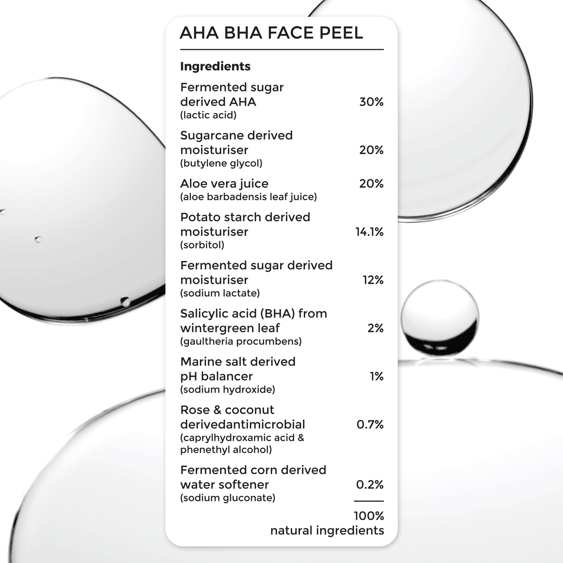Introducing the AHA BHA Face Peel, a transformative skincare solution for those seeking a radiant, flawless complexion. This remarkable exfoliating formula combines the potency of AHA and BHA acids to gently, yet effectively, renew the skin's surface. By unclogging pores and eliminating dead cells, it prevents breakouts and refines skin texture. The result is a smoother, more even skin tone, with reduced signs of aging and a luminous, youthful glow.