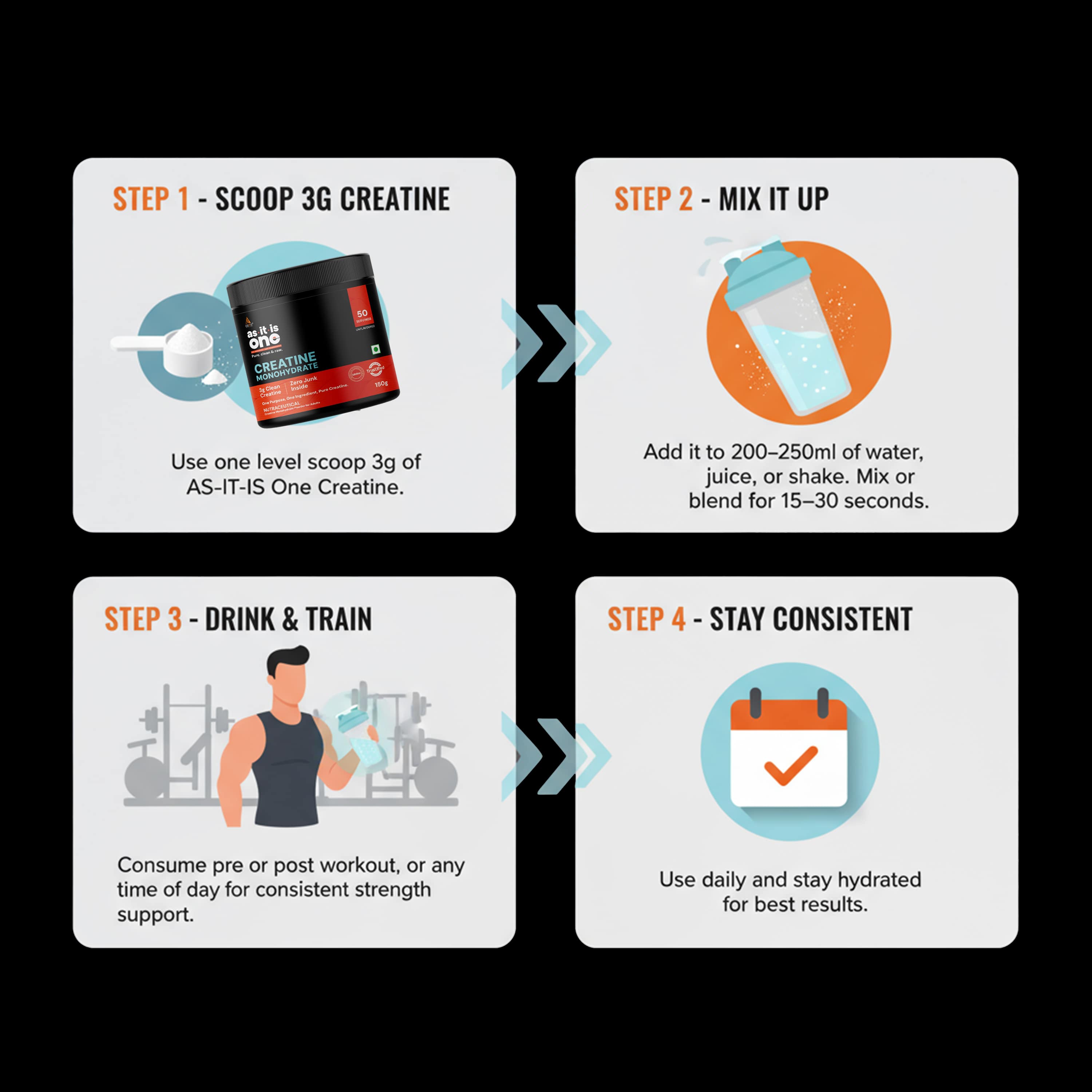 PURITY GUARANTEED: Lab tested and made at GMP registered facilities, be rest assured about the quality of our premium Creatine Monohydrate. It is free from fillers, enhancers or any questionable ingredients.