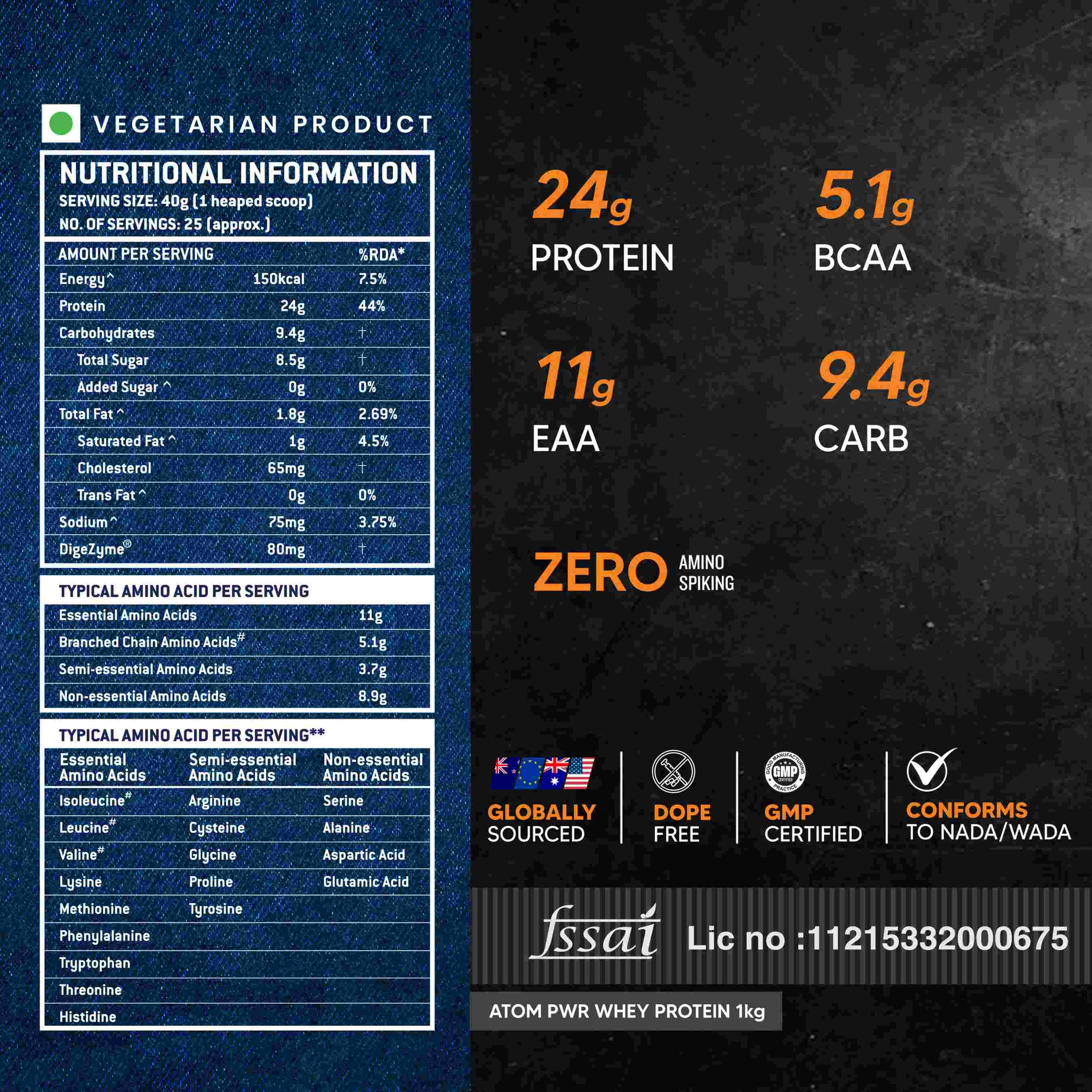 HELPS REACH FITNESS GOALS FASTER: ATOM PWR Whey Protein is a powerful fueldesigned for athletes to reach their performance goals faster and more efficiently than ever before.