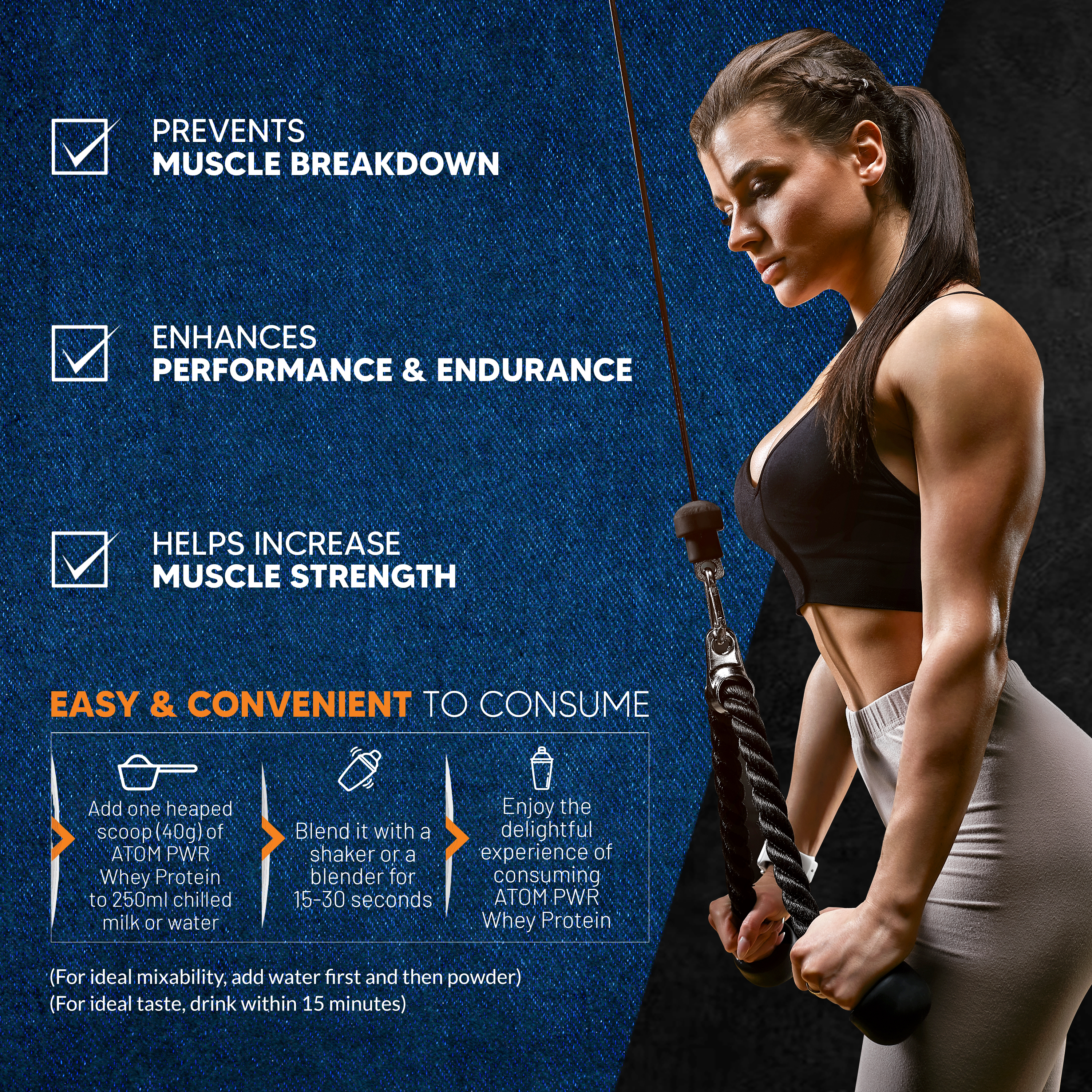 ENHANCES MUSCLE GAINS: ATOM PWR Whey can help you make the most of your efforts in