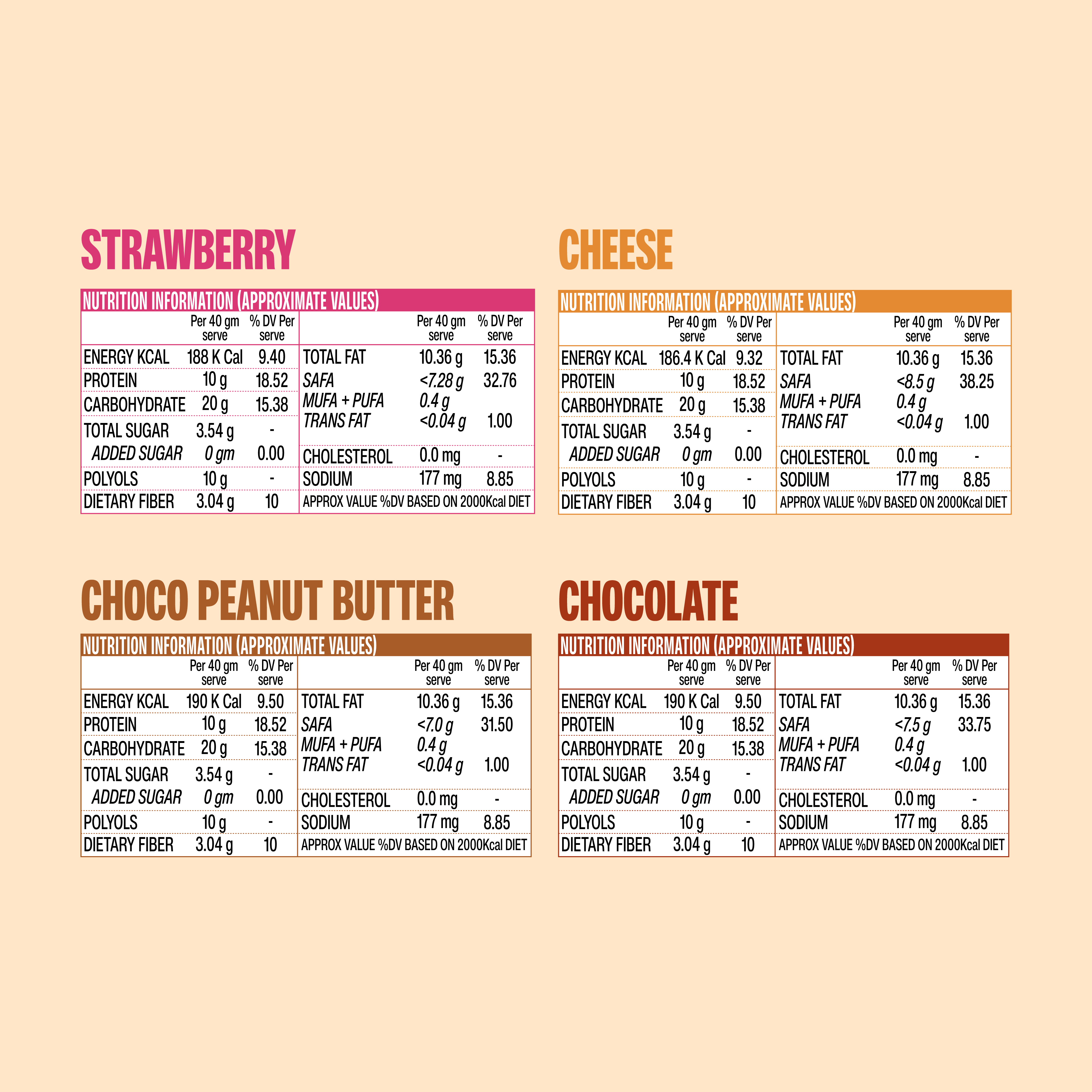 Our protein wafers is super in so many ways. Eating them JUST FEELS GOOD, unlike any other out there. Each bar is power-packed with a unique blend of fermented nutritional yeast protein, delivering a 10g punch of clean, sustainable, gut-friendly protein. It's your go-to 4 PM & AM snack, post-meal dessert, and on-the-go bite. What Makes SuperYou Protein Bars Different? There are hundreds of protein bars out there, so what makes us stand out? Were the only ones using fermented protein. Using protein as-is can lead to bloating, and tightness in the tummy, and make it hard to digest. We solve that by adding enzymes that make our protein easy to digest and absorb, so your body can use it. And lets get real about protein content. More protein per bar sounds great, but stuffing 20-40g of protein in one go can be tough on your stomach. SuperYou delivers a balanced 10g protein per barthe ideal amount to supplement a well-rounded diet without overwhelming your digestion. Remember, were not a meal replacement; were a healthy protein snack for busy days when you need a quick, clean protein boost without the fuss. Check the back of our labels if youre serious about clean eating. We mean it when we say ZERO added sugar, NO artificial flavors, and NO cholesterol. SuperYou isnt just another protein barits a smarter choice for those looking to eat healthy and hit their protein goals correctly.