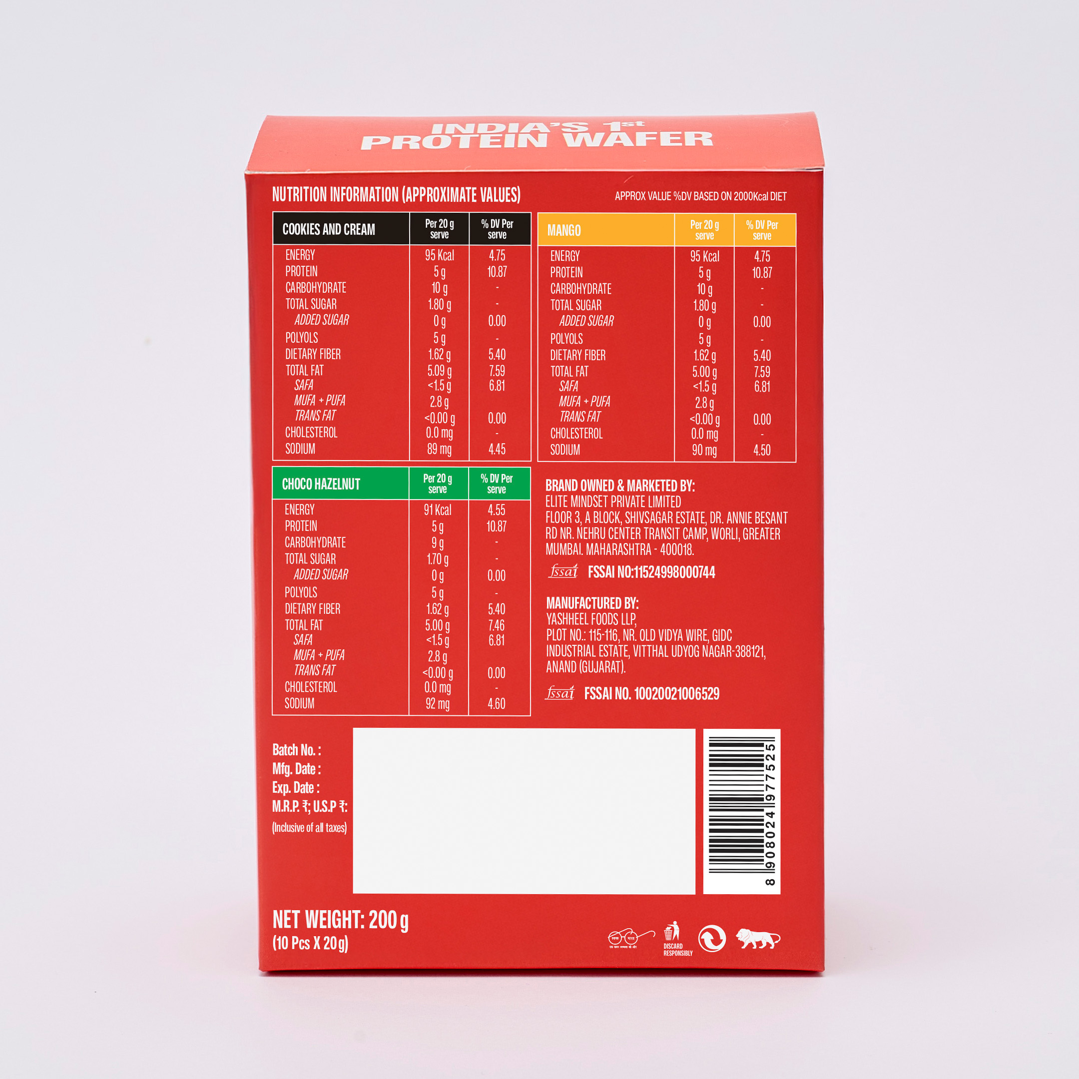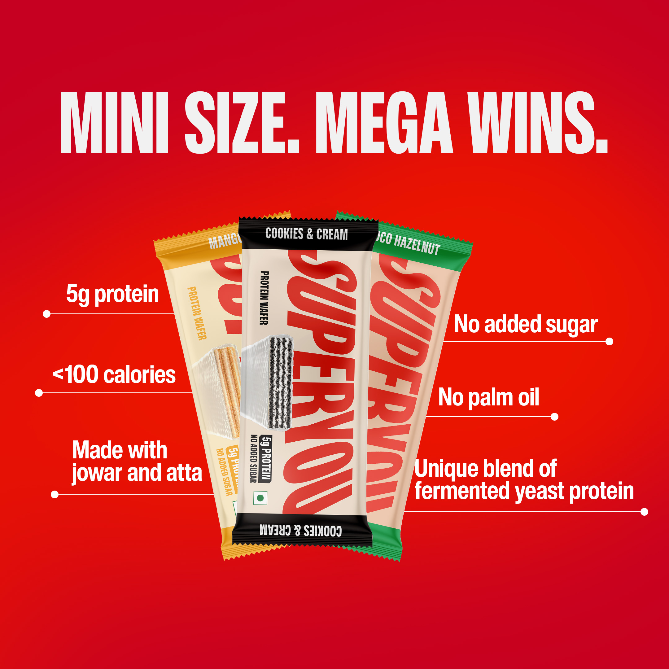 COLLECTION OF 10 MINI PROTEIN CHOCOLATE IN ALL FLAVOURS - Cant pick a favourite? You dont have to. The SuperYou Minis Assorted Box brings Mango, Choco Hazelnut, and Cookies & Cream together, perfectly sized, perfectly share-proofthree moods, one maaad tasty box.