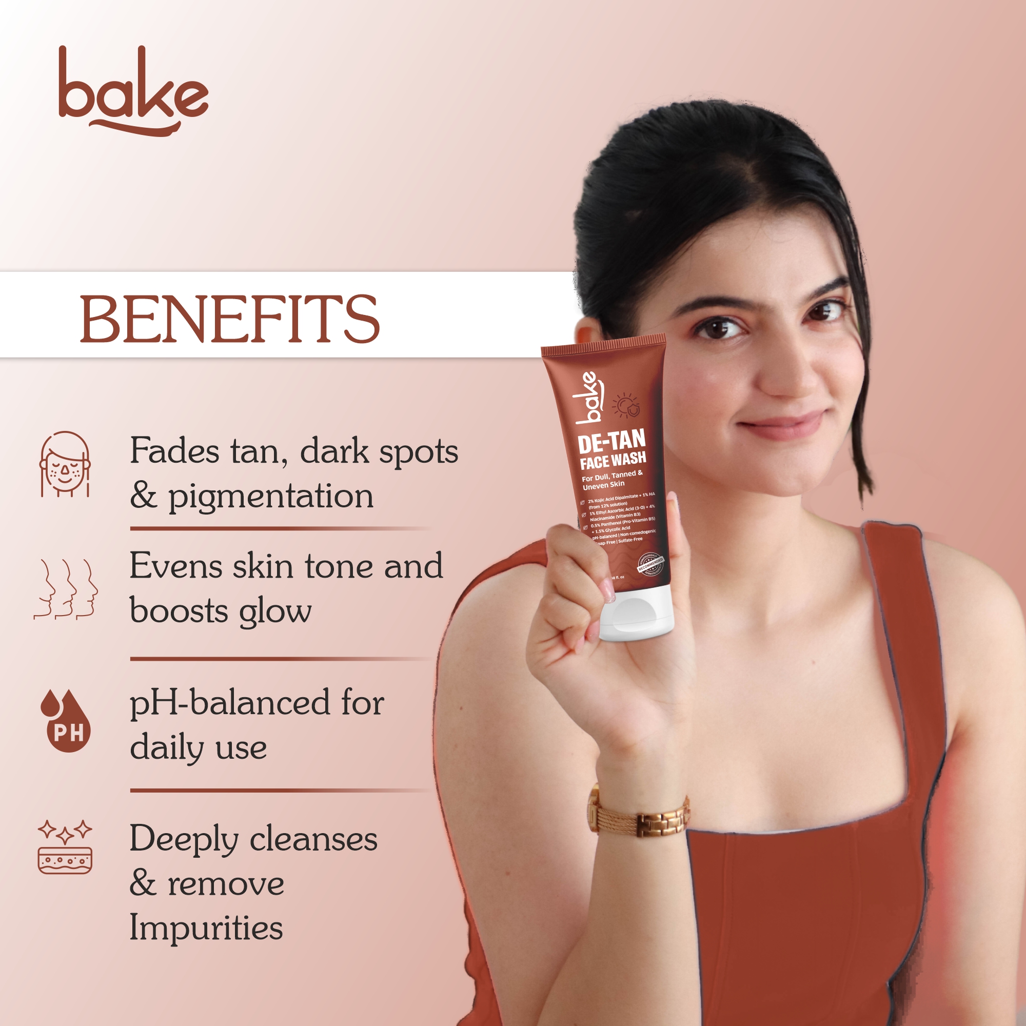 Fades Tan, Pigmentation & Dark Spots - Targets stubborn sun-induced tan and melanin build-up. Kojic Acid lightens existing spots while preventing new pigmentation. Gives your skin an even, brighter appearance with regular use. Boosts Skin Radiance & Glow - Vitamin C revives dull, tired skin and promotes a healthy glow. Antioxidant-rich actives fight oxidative damage for brighter skin. Leaves skin visibly more luminous after every wash. Gently Exfoliates & Smoothens Texture - Glycolic Acid removes dead skin cells and unclogs pores. Promotes faster cell renewal for smooth and clear skin. Improves overall skin tone and refines rough texture. Soothes & Hydrates the Skin Barrier - Panthenol calms irritation and strengthens the skins barrier. Maintains moisture levels to prevent dryness post-wash. Leaves skin soft, plump, and comfortable. Safe for Daily Use & All Skin Types - pH-balanced formula ensures gentle cleansing without over-drying. Free from parabens, sulfates, and harsh surfactants. Suitable for normal, oily, combination, and sensitive skin.