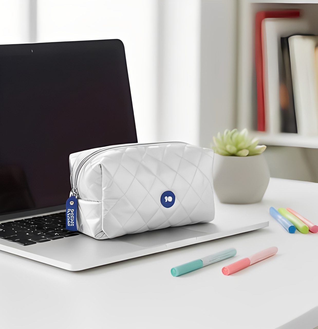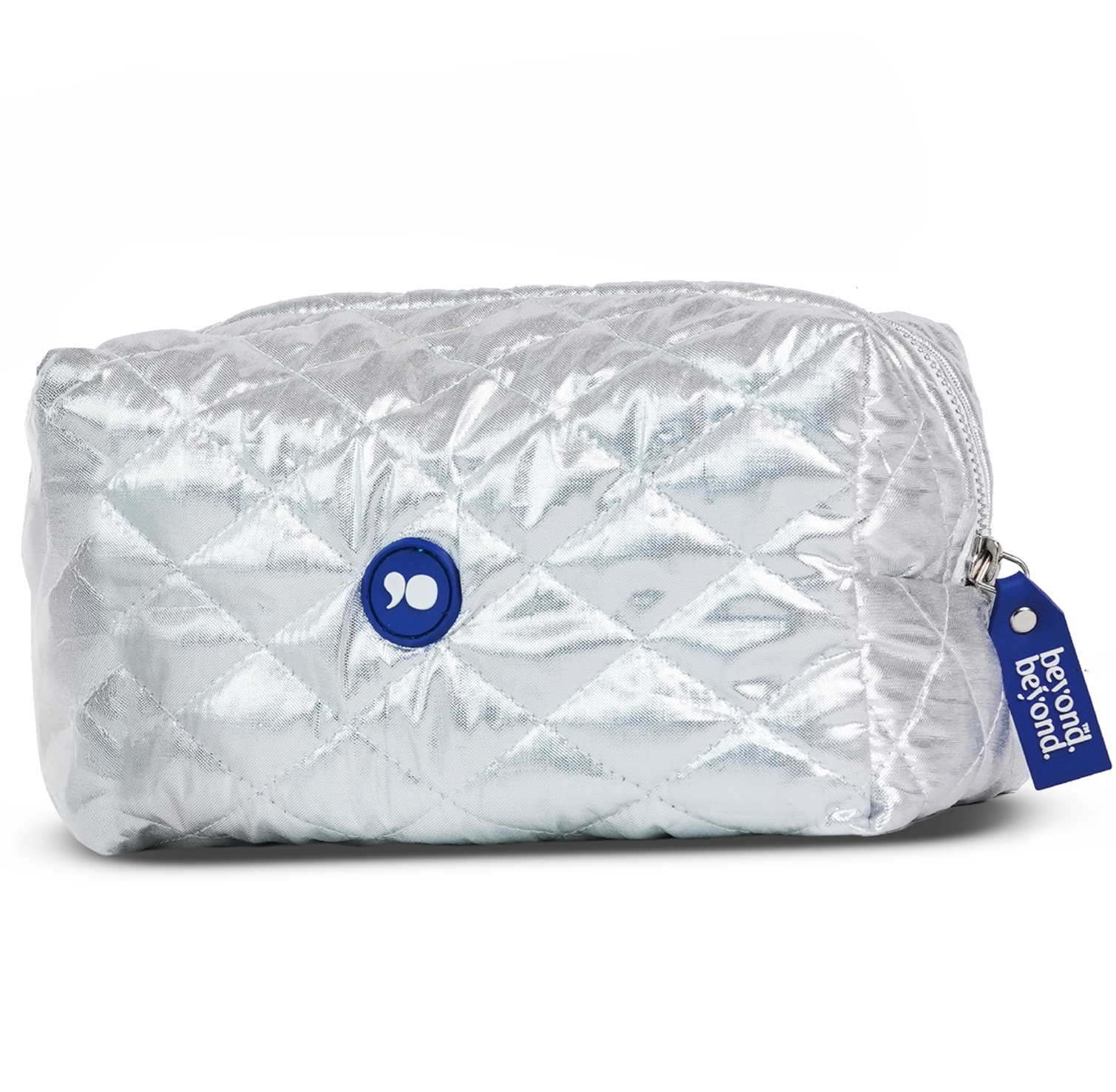 Beauty Bag Your skincare deserves a home as thoughtful as your routine. The Beyond Beyond Beauty Bag in silver fabric combines clean lines, light-reflecting texture, and effortless utility. Spacious yet refined, it carries your essentials in quiet style; a reflection of everything Beyond Beyond stands for- intentional, essential, effective.