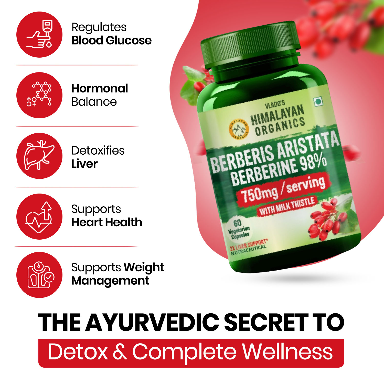 Did you know your blood sugar levels, skin troubles, and liver health, all can be managed with just 1 capsule? Your complex health issues need ancient solutions, just like a combination of Berberis and Milk thistle natural extracts. Himalayan Organics Berberis Aristata Capsules, a formula curated with the wisdom of Ayurveda, to relieve your skin troubles, enhance liver health, promote healthy blood sugar levels, and lessen inflammation. A boon for your liver health, Himalayan Organics Berberis Aristata Capsules are devoid of dairy, soy, fish, egg, nuts, gluten, and is a vegan friendly supplement.