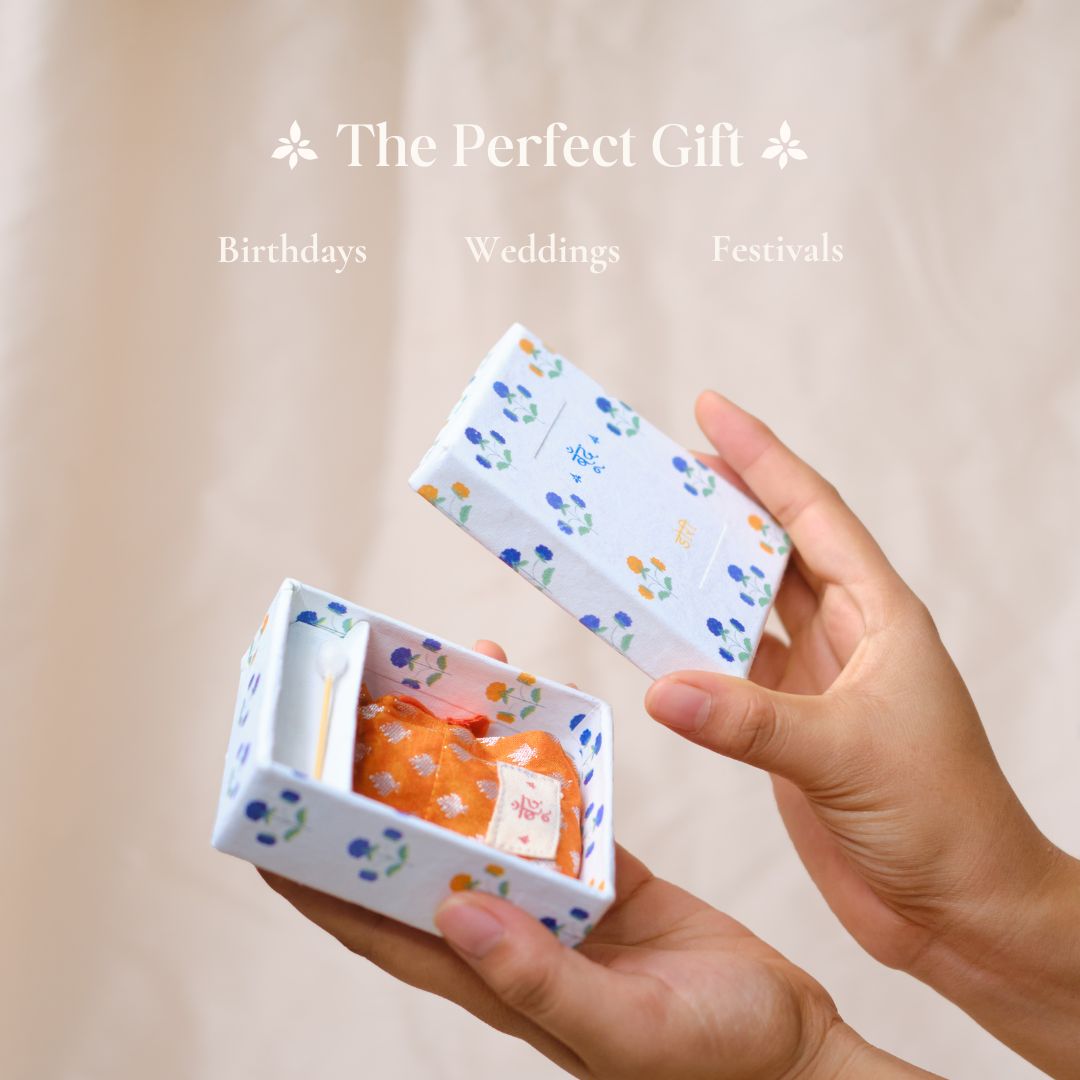 Handcrafted, plastic-free packaging: The fragrance box is crafted by artisans using recycled handmade paper from cotton scraps. The packaging is completely plastic free.