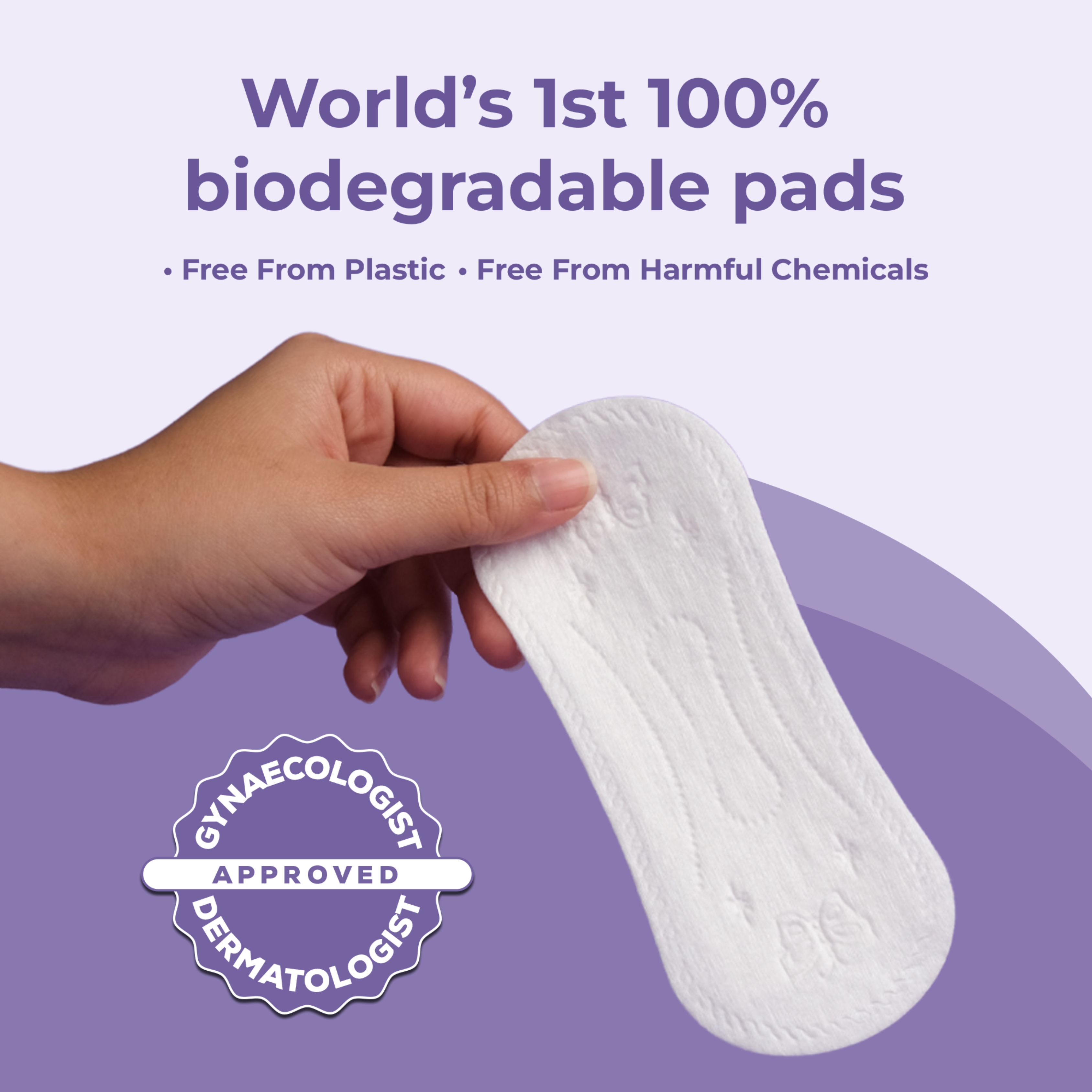 Special Product Features * Biodegradable and compostable * Bleach and perfume free to avoid irritation and rashes * Thin pads to ensure comfort * Banana fiber absorbent core * Panty liner pad (155mm) * No-slip adhesive keeps the pad in place providing security * Wider back for overnight protection * Allows you to have a carefree sleep * Individually wrapped in plant-based cover Saathi biodegradable pads are your ultimate companion. They are thoughtfully designed to use natural, locally-sourced materials, including banana Fiber. Saathi pads are gentle on the skin and Mother Earth, disappearing quickly upon disposal. By purchasing Saathi pads, you also give the gift of biodegradable pads to women in rural communities. Disposal Instructions You may dispose of Saathi pads in a waste bin. After disposal, Saathi pads degrade within 6 months, under normal conditions.