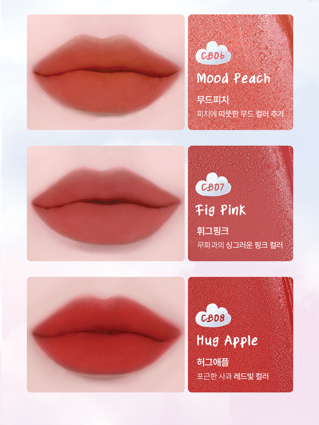The Cats Lab Blur Lip Velvet Tint CB012 Powder Peach features a lightweight, airy texture that glides onto the lips like a gentle whisper. It combines the best of powder and gel technology to fill in lip grooves and deliver velvety smooth, long-lasting color. Its plush, petal-soft consistency hugs the lips for comfortable wear and effortless gradient looks. This dual-purpose tint works beautifully on both lips and cheeks, offering vivid pigmentation that blends seamlessly for a soft-focus finishideal for your go-to makeup.