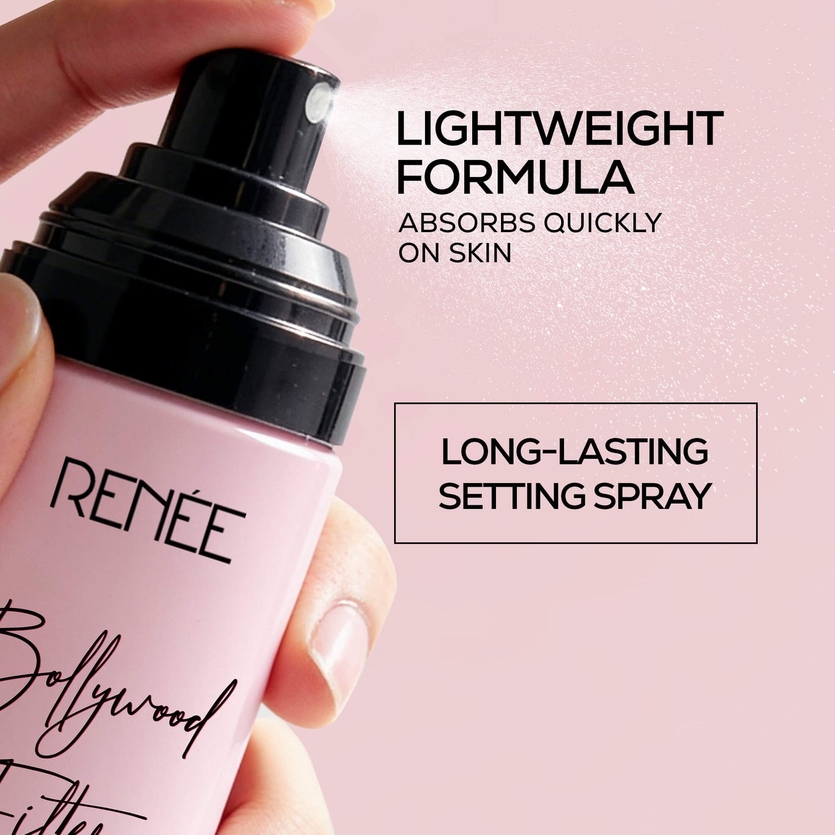Sets and keeps makeup fresh in place for hoursInfused with Niacinamide & Hyaluronic acid Delivers a matte finish to your makeup Blurs imperfections, controls shine & ensures hydration Lightweight, fast-absorbing formula Stay Picture-Perfect! Mist your way to perfection with RENEE Bollywood Filter Blurring Setting Spray. It sets and locks in your makeup for hours while giving a soft-focus blur to minimize skin imperfections. Niacinamide and Hyaluronic acid in this formula control shine, hydrate skin, giving it a smooth feel. This setting spray gives a flawless matte finish to your makeup, keeping it intact and comfortable. RENEE Bollywood Blurring Setting Spray features a quick absorbing, ultra-fine mist that ensures your makeup slays all day just like you.