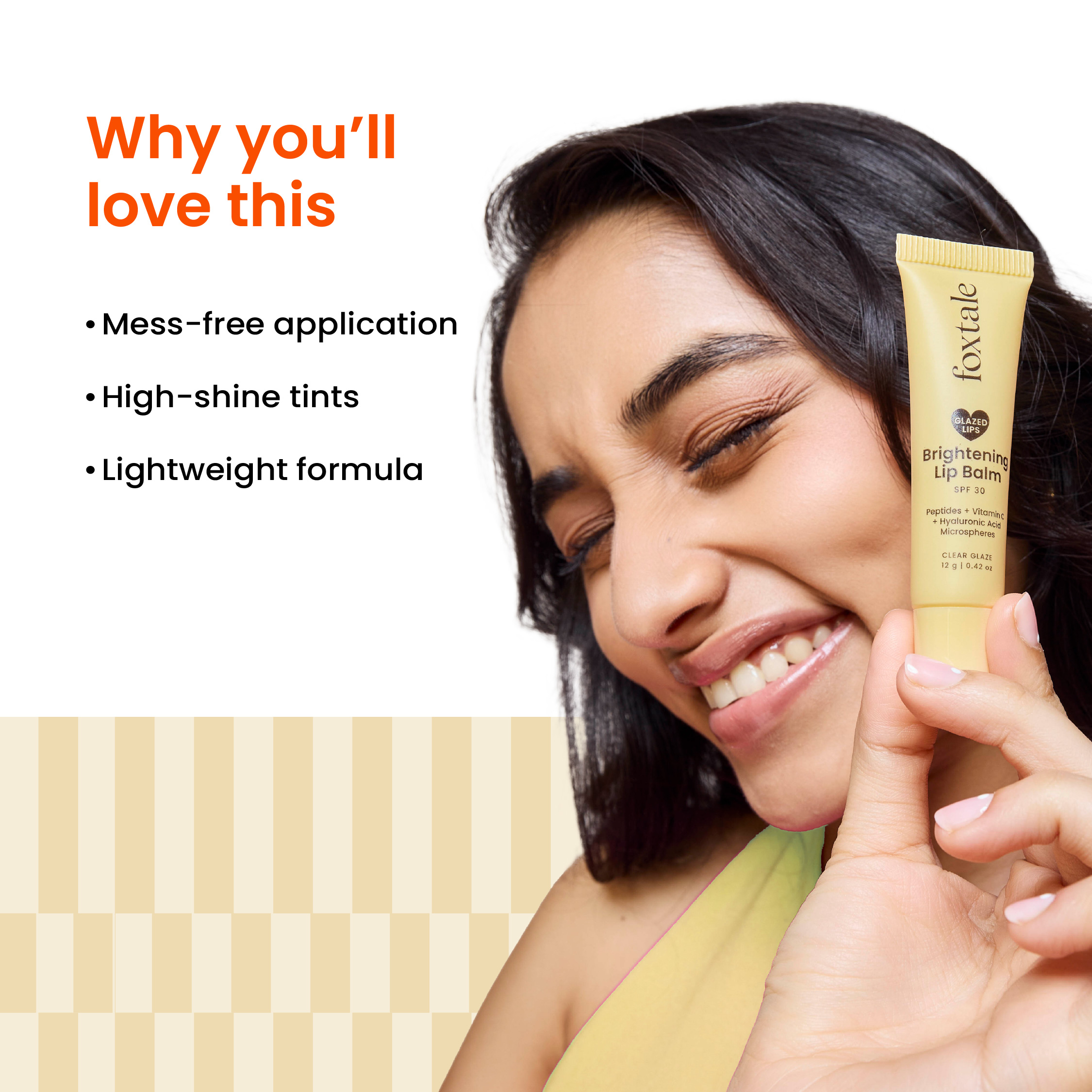 Kissing chapped lips goodbye may be a cliché but that doesn't make it any less true! Formulated with lip-loving ingredients like Peptides, Vitamin C & Hyaluronic Acid Microspheres, this high-shine formula glides seamlessly over your lips, leaving them instantly moisturized and beautifully glazed. Lightweight in its texture, pillowy soft in its feel, get those supermodel lips for days! Available in 4 beautiful tints that cancel out pigmentation around the mouth.