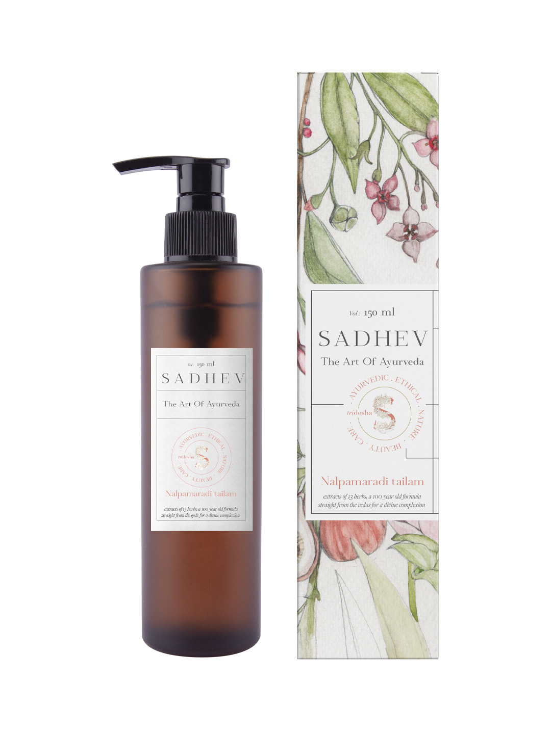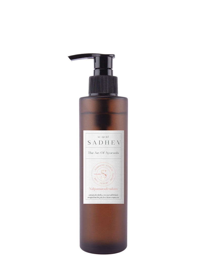Take a palmful of Sadhev’s Nalpamaradi Tailam and apply gradually on the face, neck and body using slow upward strokes before bathing. - Keep the oil on for at least 20 minutes for an ideal effect.