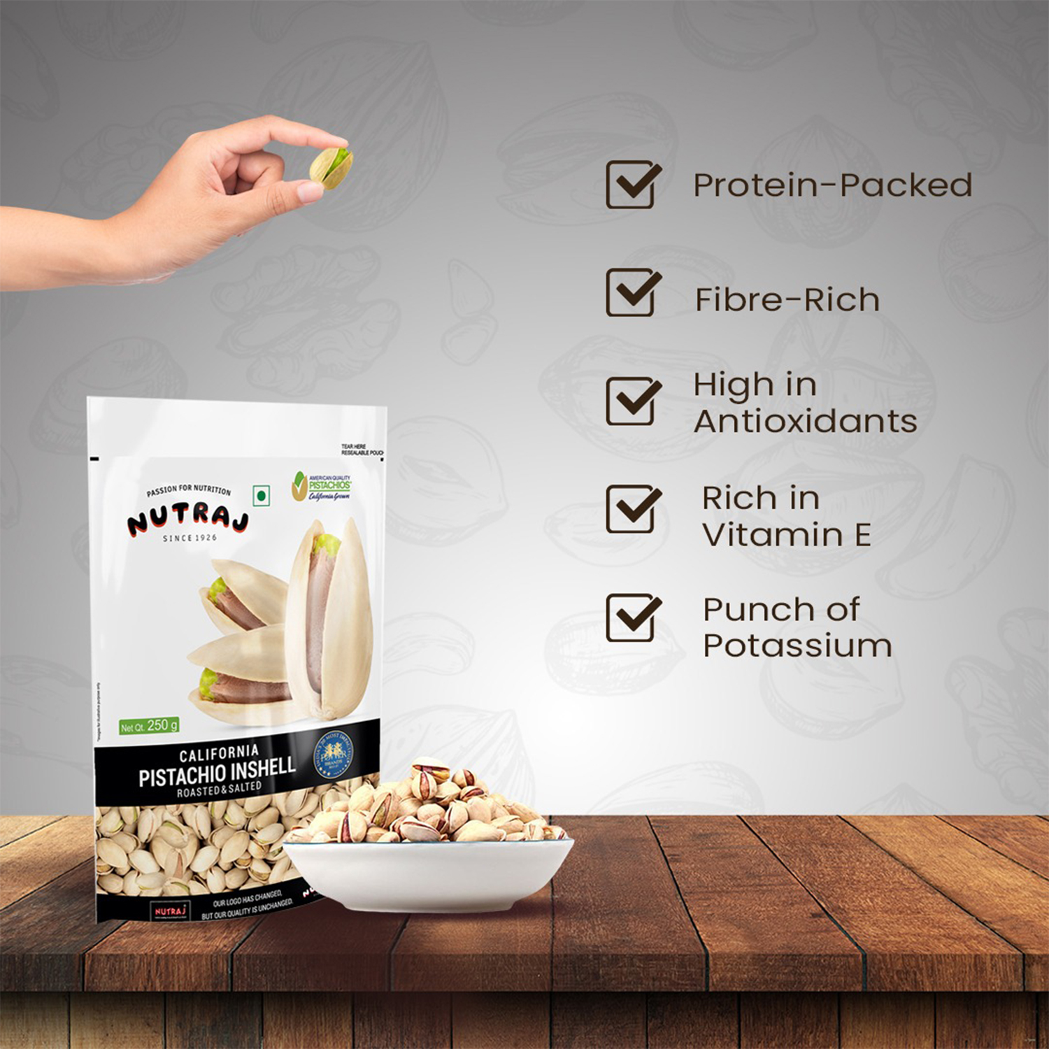 Nutraj California Pistachios are prized for their subtle salty flavour, unique texture and high nutritional profile. These green nutritional goldmines are a great source of dietary fiber, vitamin B 6, phosphorus, copper and protein, and contains balanced amount of essential amino acids. Pistachios are not just enjoyed as a snack food; they are also used in baking and cooking. Grab your marvel pack of these delicious roasted & salted California pistachios now and let its yearning fill you up.