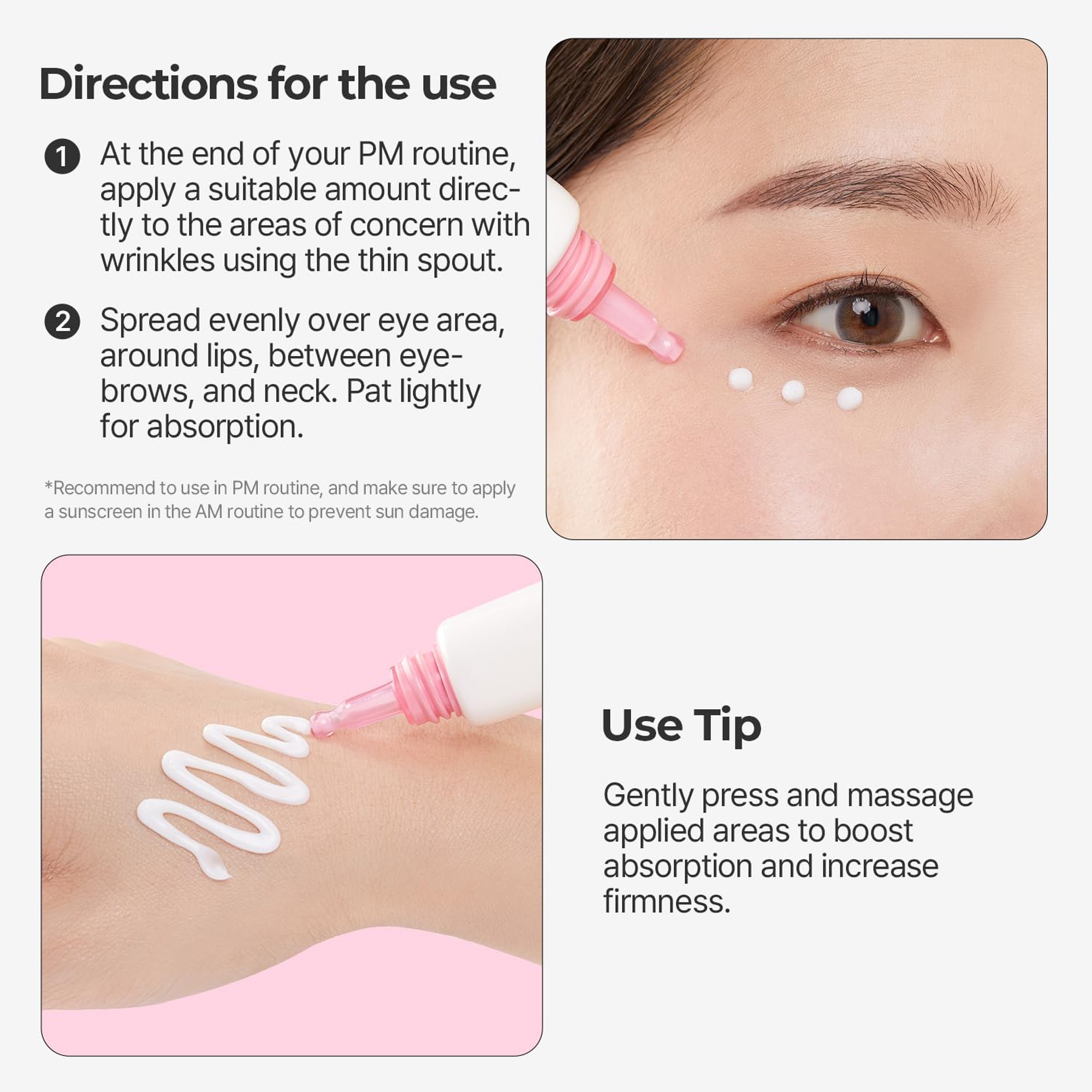 1. At the end of your PM routine, apply a suitable amount directly to the areas of concern with wrinkles using the thin applicator.