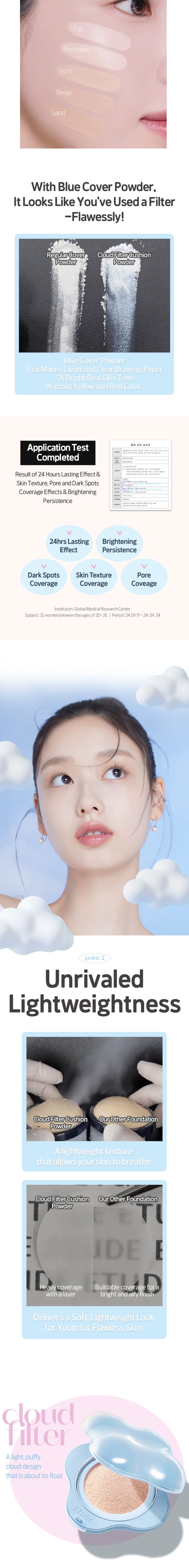 Elevate your everyday makeup routine with the Etude Cloud Filter Cushion - 23 Beige (15 g). This airy cushion foundation melts into skin, creating a smooth, soft-focus finish. Its breathable coverage helps blur pores and redness while enhancing natural radiance. Formulated with skin-loving ingredients, this nourishing foundation keeps your complexion hydrated and balanced. Also, this tone-correcting foundation brightens dull areas for a naturally even appearance.