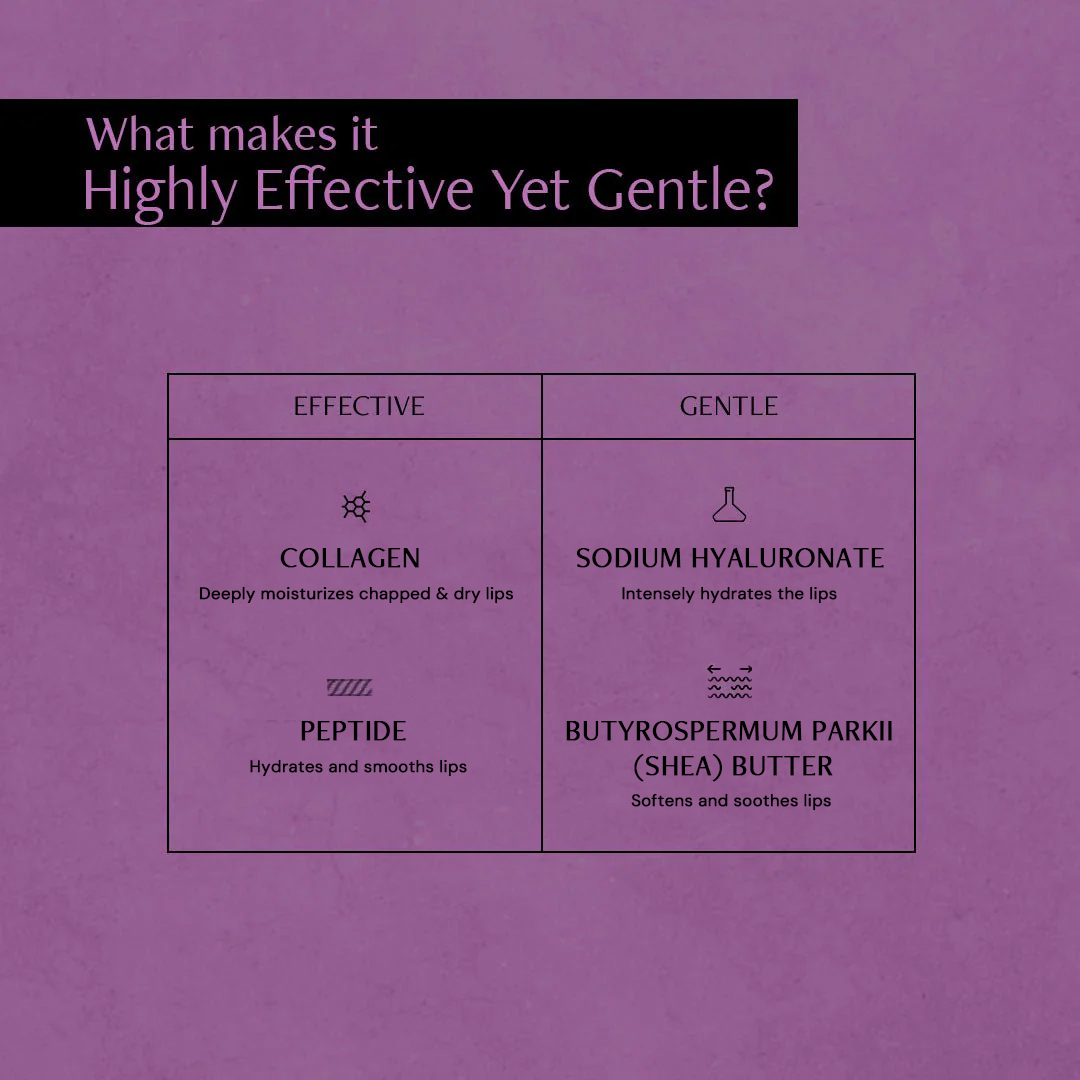 Collagen & Peptide Lip Sleeping Mask effectively targets lip dryness, flakiness, and even cracks, promoting a visible healing process. With continued use, you will observe diminishing of fine lines and wrinkles around the lips, revealing a smoother, plumper, and more youthful appearance.This lip mask contains 0.2% Collagen which improves lip moisturization by binding and retaining water content into the lips and 2% Peptide which makes the lip appear fuller by boosting Collagen & mucopolysaccharide production.
