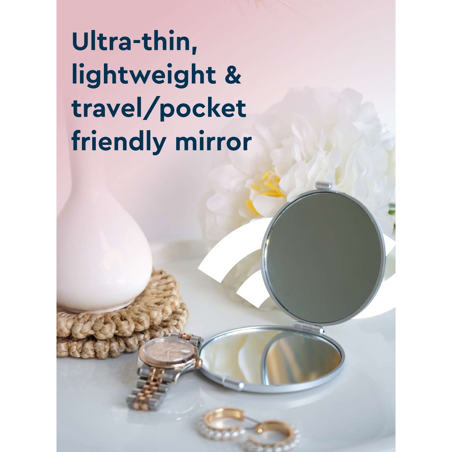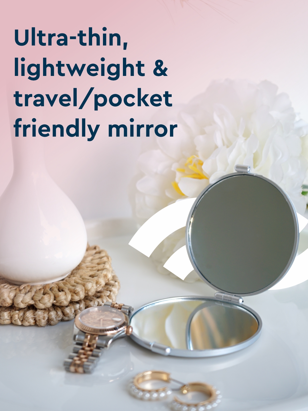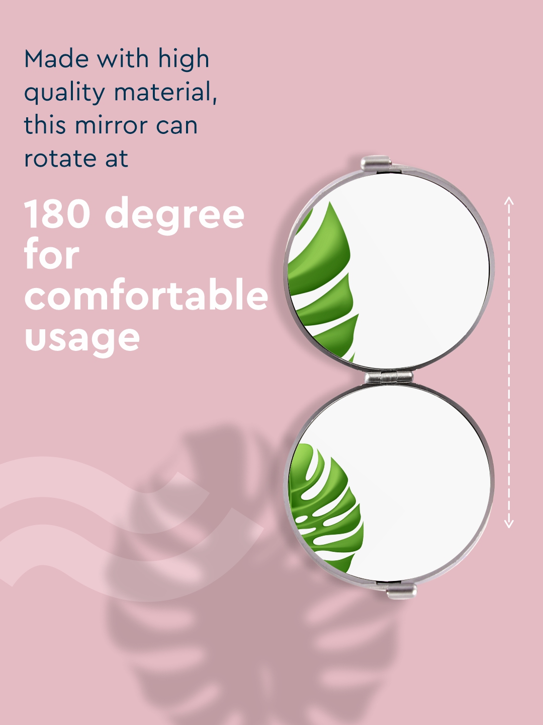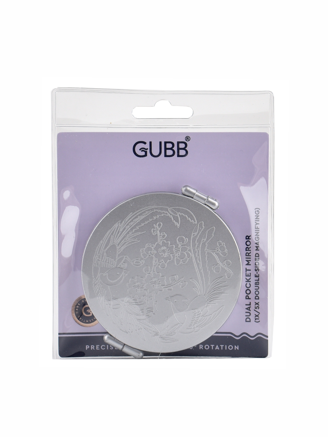 GUBB Compact Pocket Mirror is perfect for on-the-go touch ups! This ultra-handy, two fold makeup essential is equipped with a zoom-in magnifying mirror on one side, and is ideal for vacations, parties and the office. This luxe pocket mirror rotates at 180 degrees, and comes in an elegant silver color. Pop this sleek, lightweight mirror into your carry-on while hanging out.