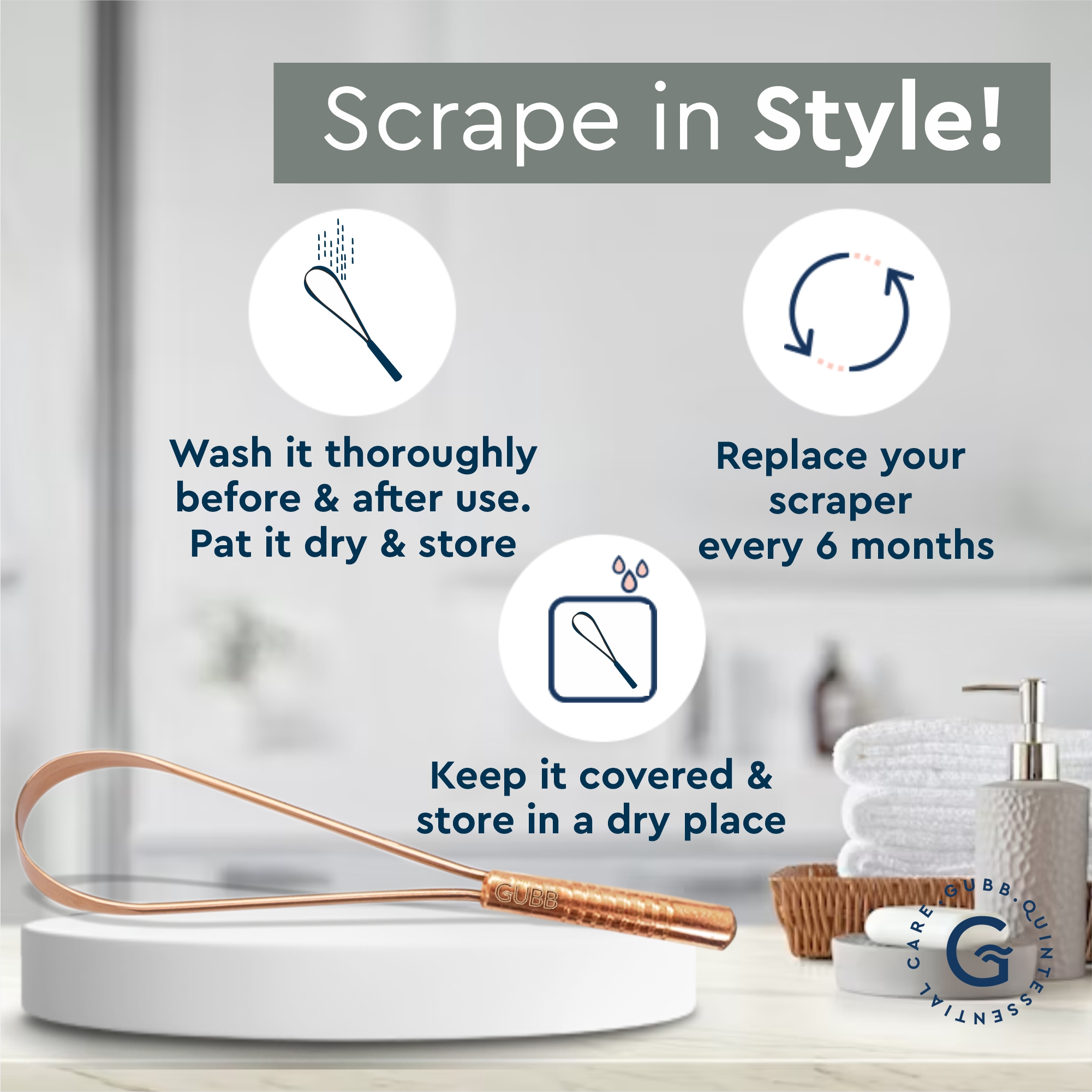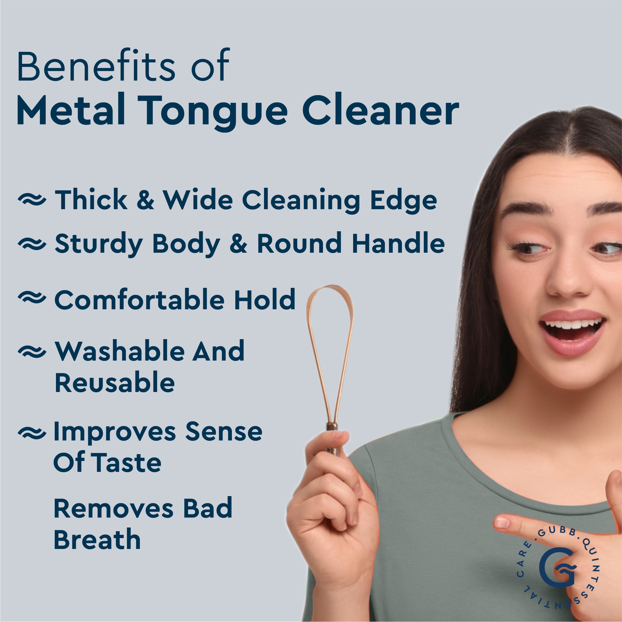 1. Use the GUBB tongue cleaner loop before eating or drinking every morning.