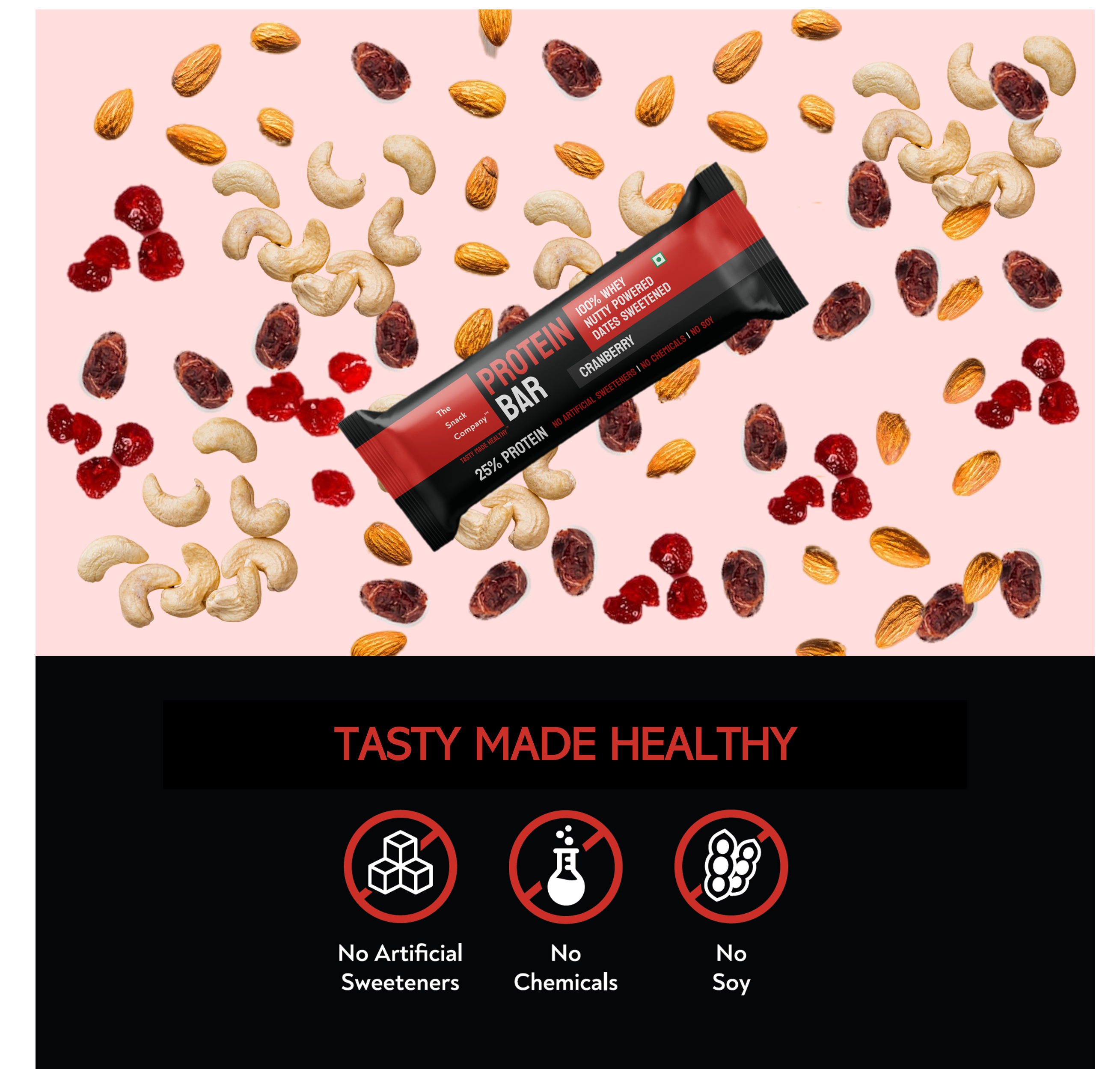Discover the perfect harmony of taste and nutrition with our Cranberry Protein Bar. Packed with Dates, Whey Protein, Cashews, Cranberries, Almonds, and Cocoa Butter, it's a delicious, antioxidant-rich treat that nourishes and satisfies. Fuel your body, indulge your taste buds!