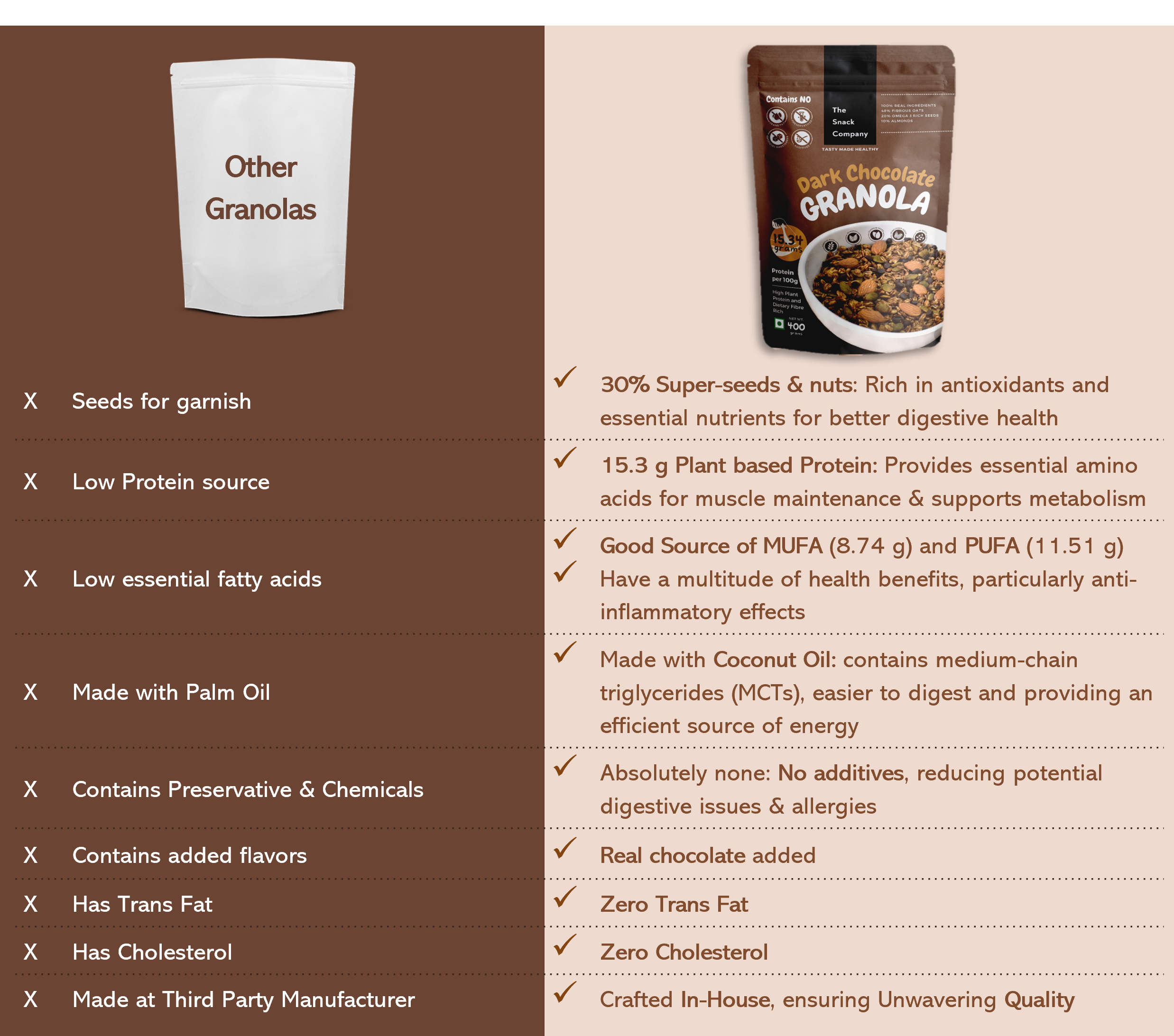 Waking up to chocolate for breakfast now gets easy with our Dark Chocolate Granola. Infused with cocoa powder that’s 7 times higher in antioxidants than regular ones, it’s sure to satiate your chocolate cravings while adding nutritional benefits to your diet. Savor it as a crunchy ice cream topping, or as a rich addition to your morning yogurt, or just a good chocolate snack for your afternoon wake-me-up snack.