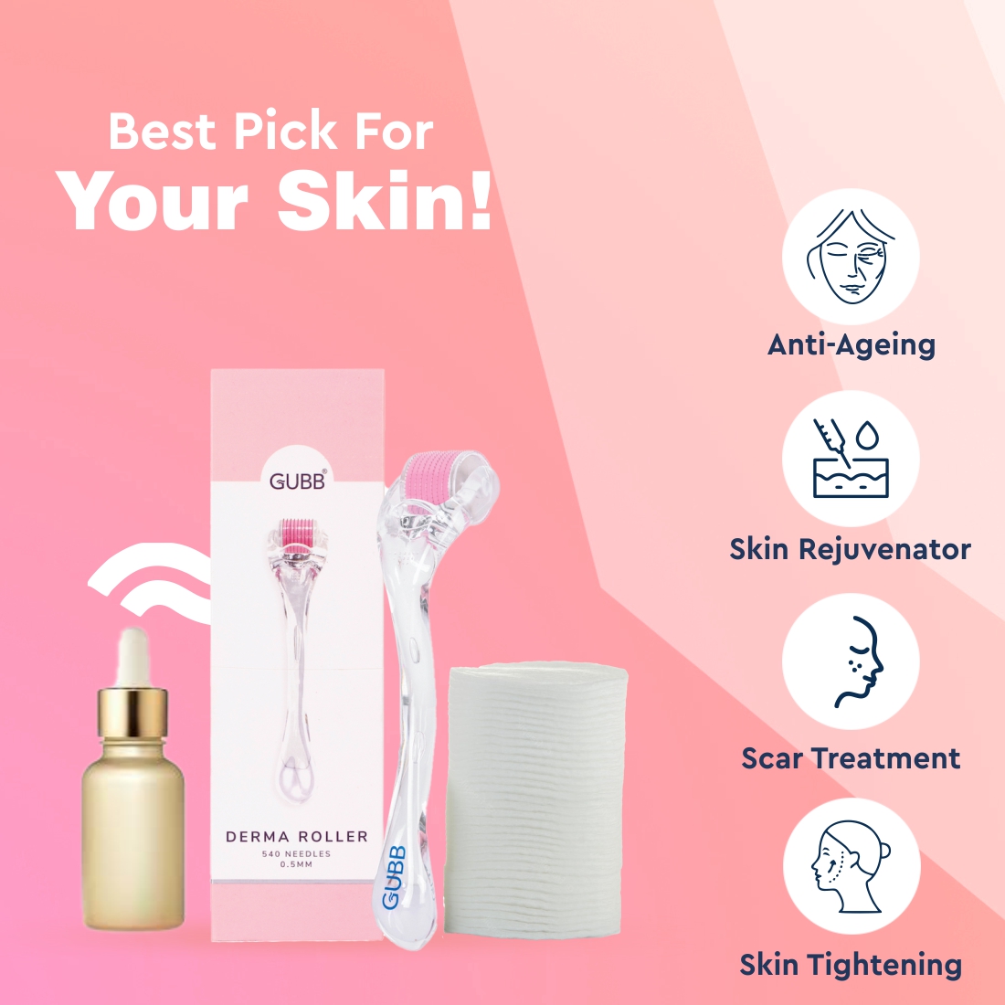 Get that perfect summertime glow with the GUBB Derma Roller 0.5 Need to Updatele. Our derma roller promises plush and awakened skin, and is suitable for all age groups! The perfect complement to your skincare routine, our derma rollers help diminish the appearance of wrinkles, dark circles and acne scars.