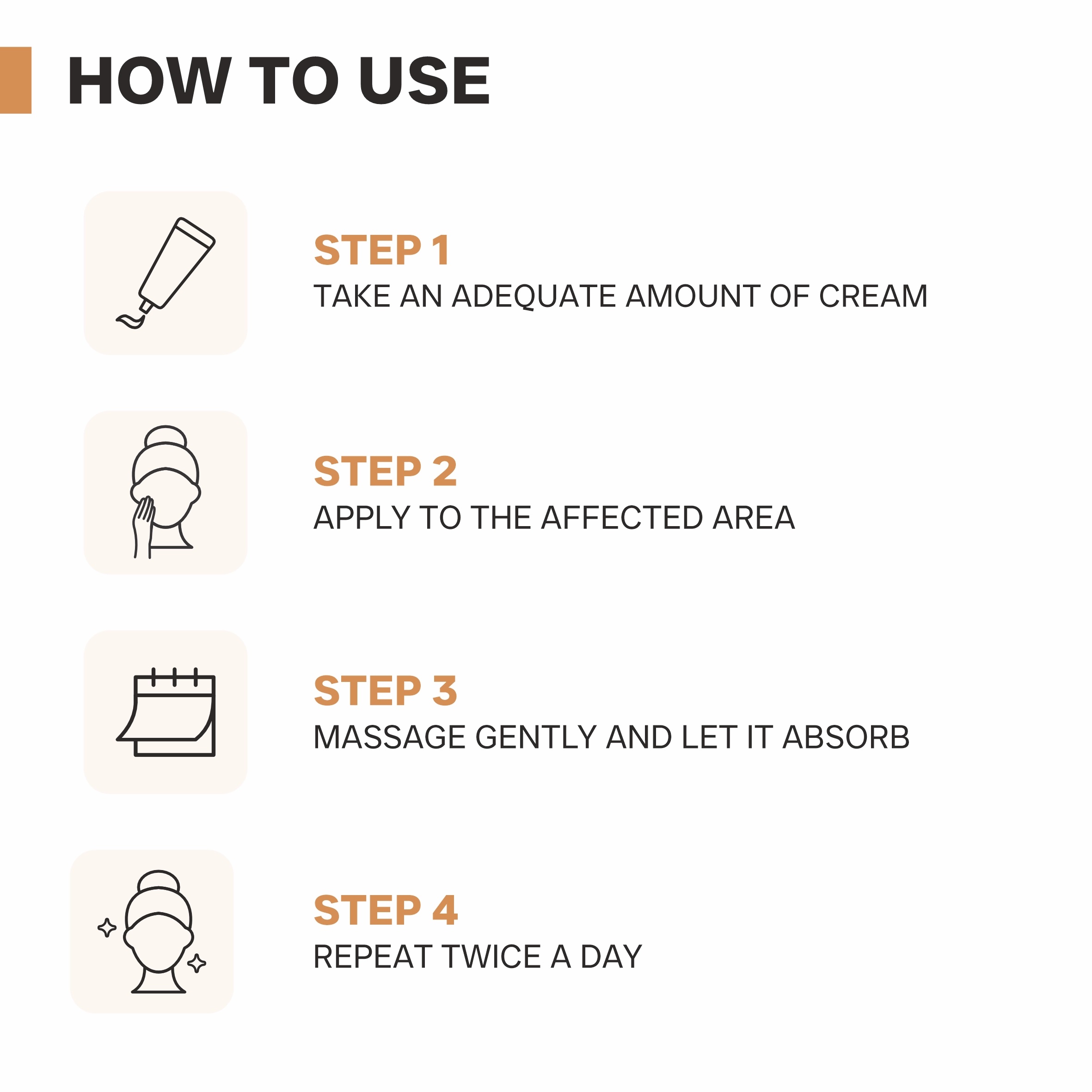 Take an adequate amount of creamStep 1: Apply to the affected area