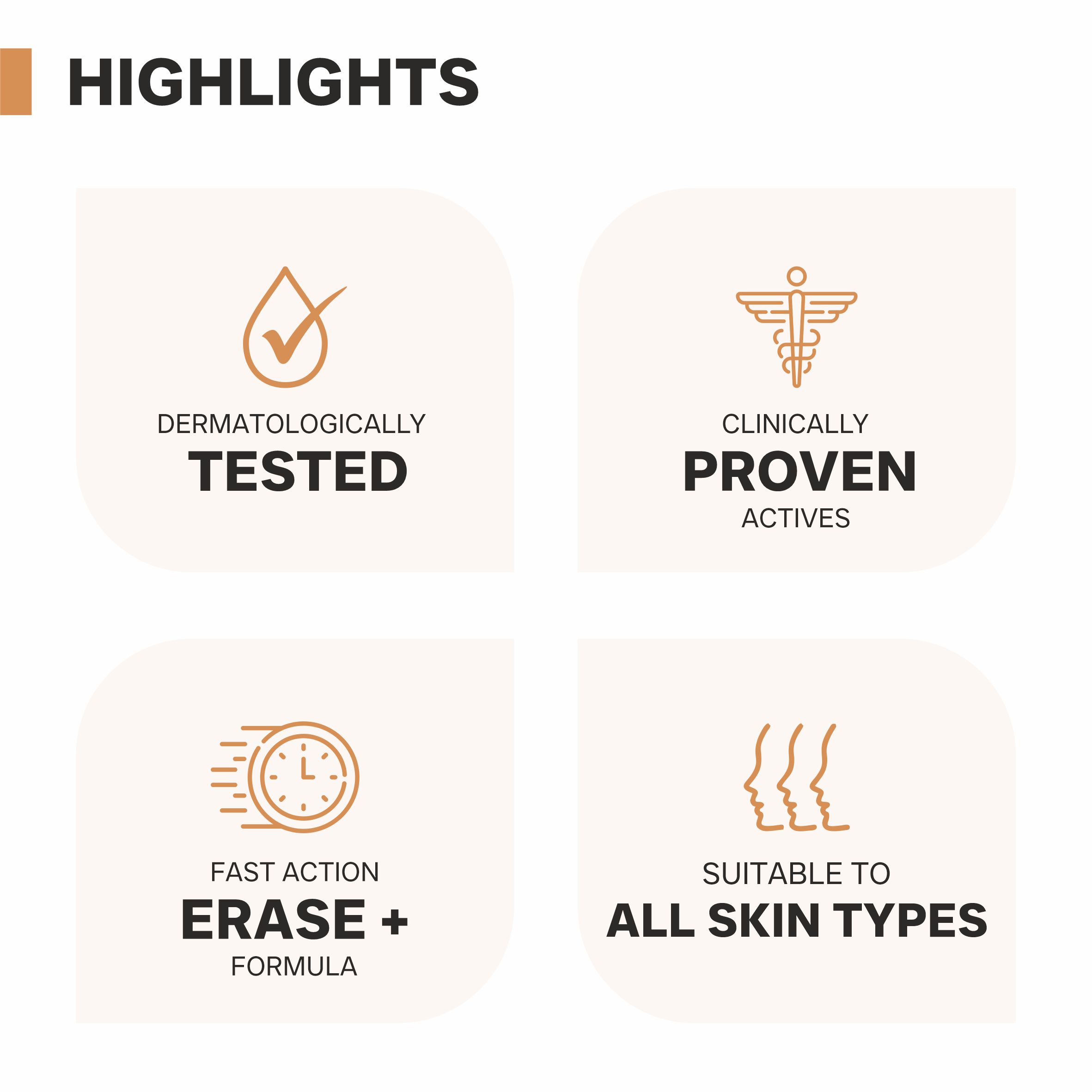 Aqua, Niacinamide PC, Caprylic/Capric Triglyceride, Almond oil, Glycerine, Kojic Acid Dipalmitate, Lecigel, Alpha Arbutin, Phenoxyethanol (and) Ethylhexylglycerin, Vitamin E, Butylated Hydroxytoluene, Disodium EDTA, Tyrostat-09, Fragrance (IFRA Certified Allergen Free Fragrance)