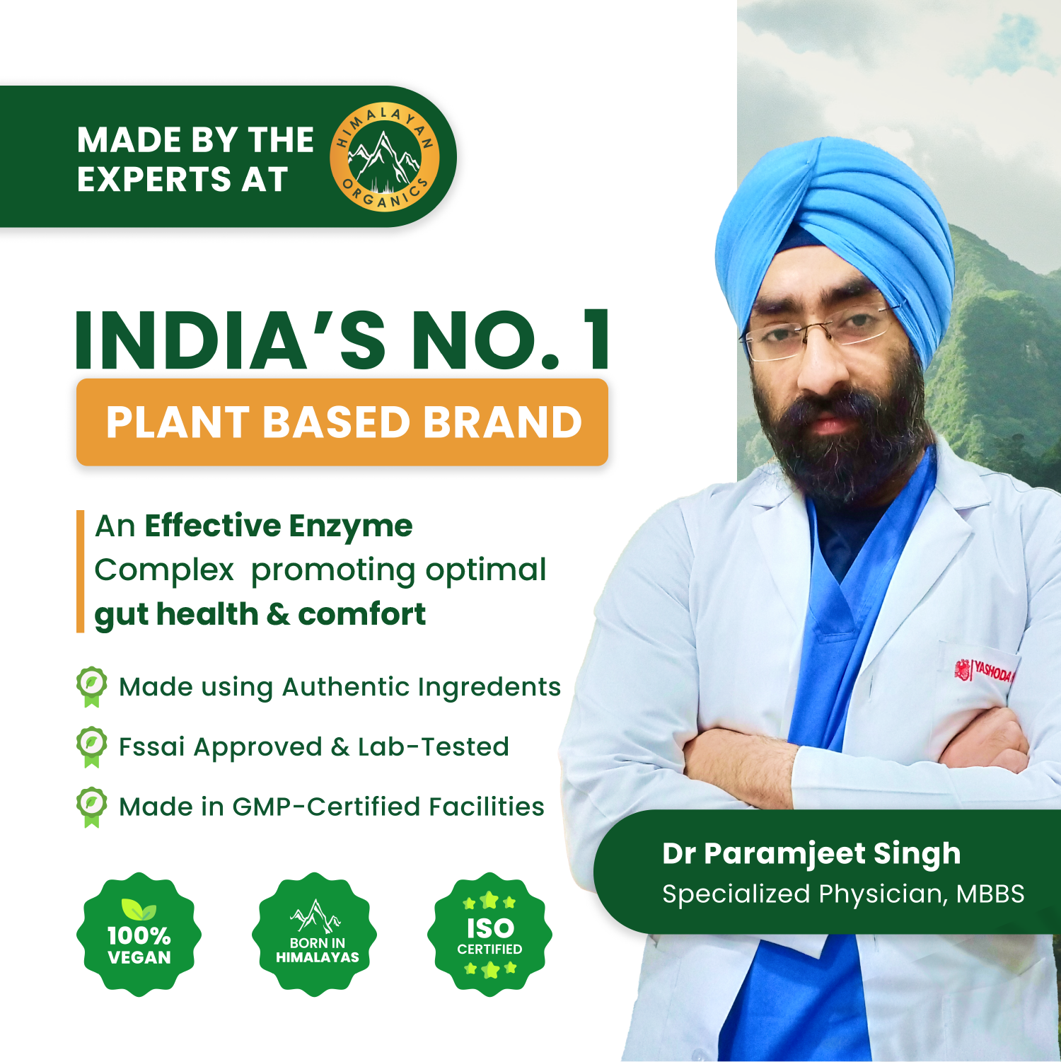Himalayan Organics Digestive Enzyme is curated to improve the functioning of all digestive enzymes in the body. Essentially, the product intensifies the process of breaking down fat, proteins, and carbohydrates in the body, relieving against mal-absorption. Himalayan Organics Digestive Enzyme Tablets help to improve the digestive function of the body, promote optimal nutrient absorption, and safeguards against digestive disorders. An additional benefit associated with correct usage is that it assists energy production and cell growth.