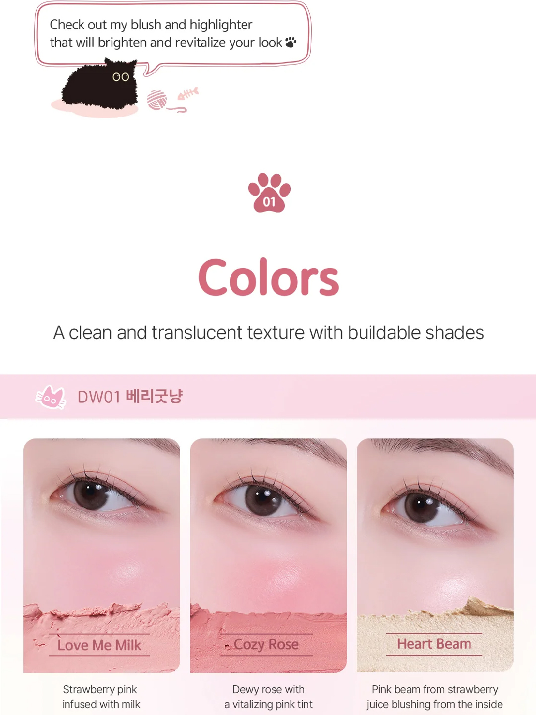 Black Rouge Dewy Whip DW01 Strawberry is a versatile dual-purpose cream designed for both cheeks and highlighting. The whipped, mousse-like texture blends seamlessly into the skin, offering a sheer, buildable payoff. DW01 Strawberry is a soft, cool-toned pink that mimics the fresh blush of strawberry cream ideal for fair to medium skin tones seeking a natural flush.