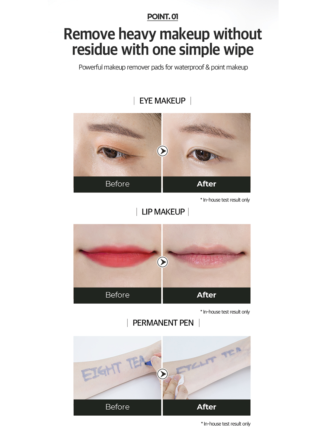 EIGHT TEA LIP & EYE REMOVER PAD is specially formulated to cleanse delicate lip and eye areas without irritation. Infused with tea extracts and moisturizing ingredients, these soft pads effortlessly remove makeup, dirt, and impurities, leaving the skin refreshed, clean, and hydrated. Ideal for sensitive skin, they provide a convenient and gentle solution for quick makeup removal, helping maintain healthy and nourished skin around the eyes and lips.