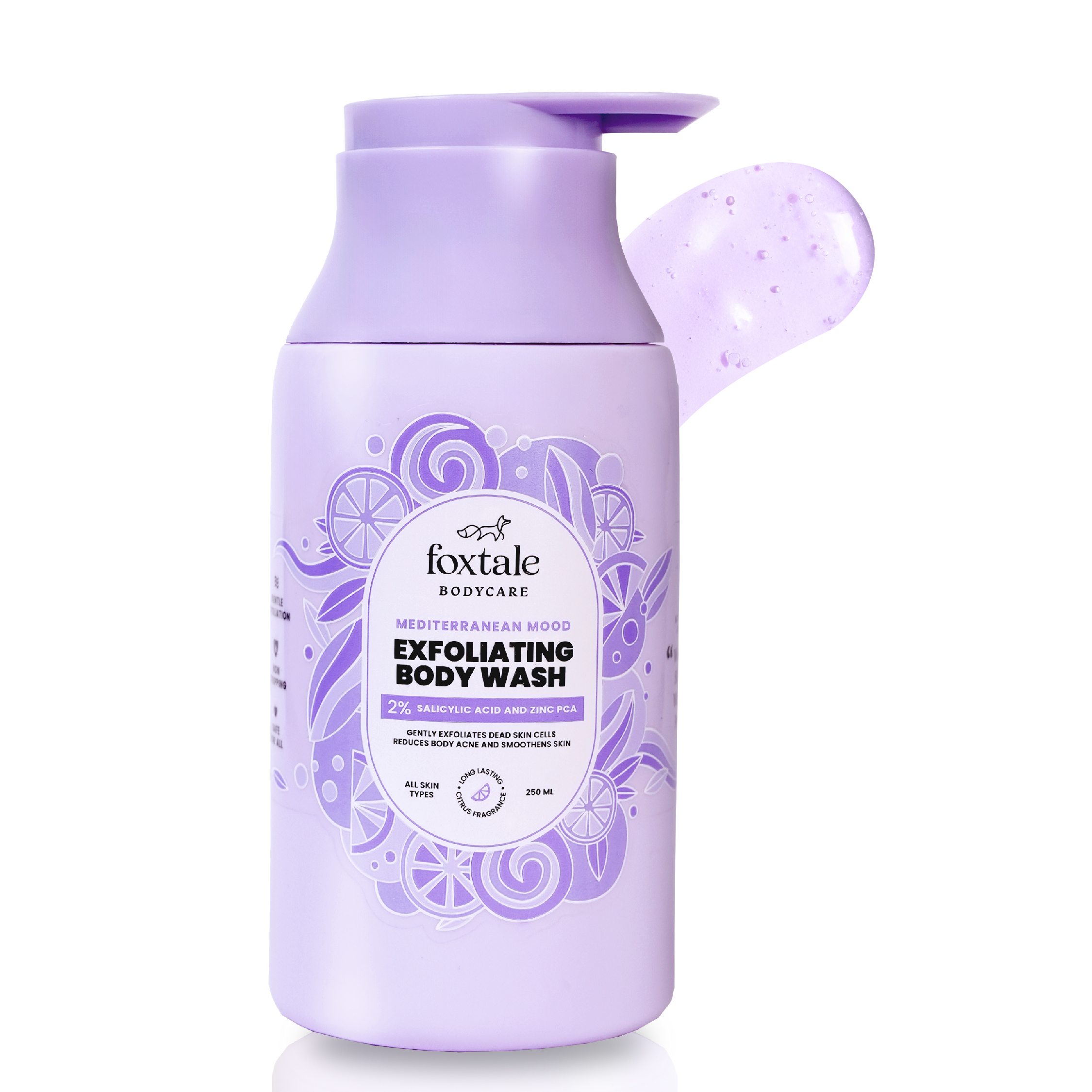 Made with a potent blend of 2% Salicylic Acid and Zinc PCA, this active-infused body wash takes your skin from rough to smooth in a matter of days! It kills acne-causing bacteria, gently exfoliates dead skin cells and unclogs congested pores. Whether you're battling body acne, dealing with ingrown hair, or simply seeking smoother skin, our body wash smoothens over all the bumpy roads. All without stripping your skin dry!