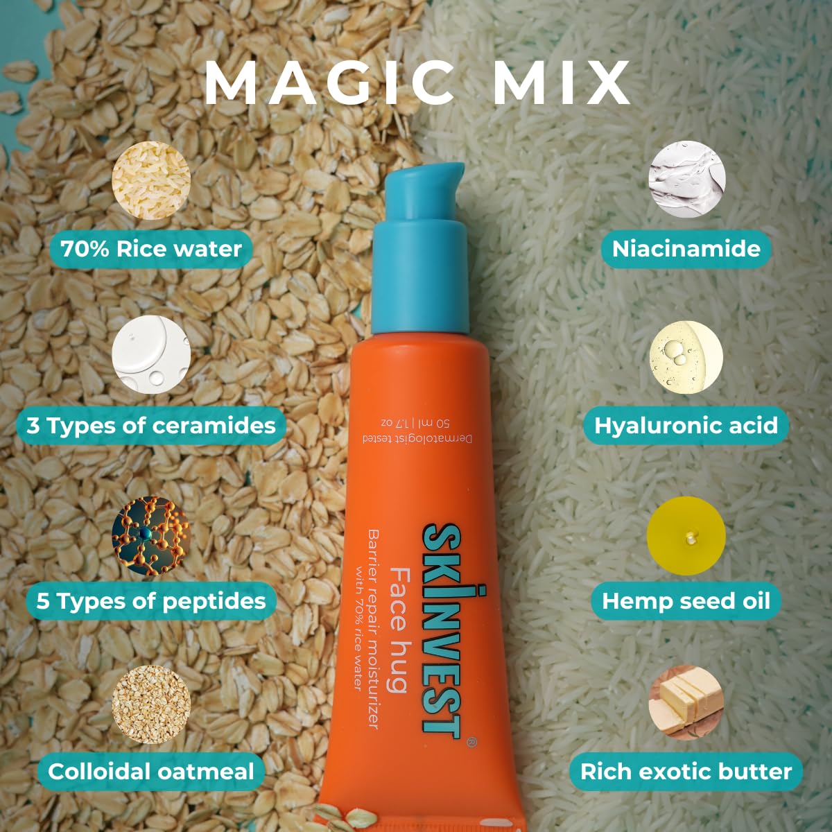 Formulated with 70% rice water, it replaces the traditional moisturizer water base to provide a nutrient-rich, soothing formula that strengthens your skin barrier, leaving it visibly healthier and brighter. This revolutionary moisturizer replaces the traditional aqua base to deliver deep hydration, nourishment, and a soothing "face hug" with every use. Ultra lightweight texture absorbs quicky into the skin, with barrier-strengthening ingredients like ceramides and peptides, it delivers immense hydration and repairs the skin barrier 5 times more effectively than any ordinary moisturizer.