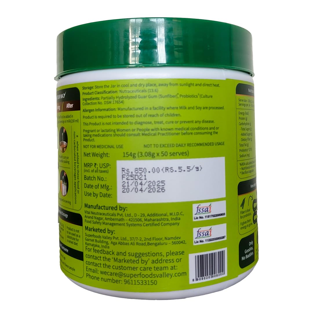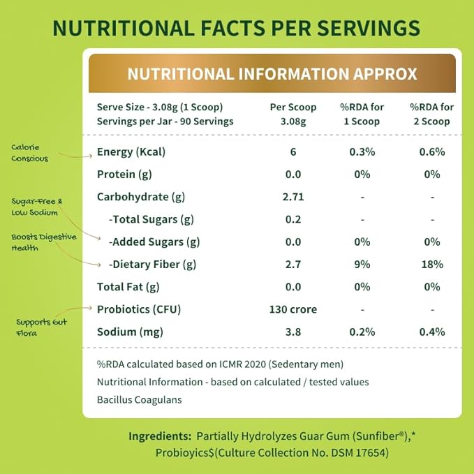 Constipation, Bloating & Gas Relief | Everyday Prebiotic Soluble Natural Fibre Supplement Powder + Probiotic | Isabgol / Psyllium Husk Free