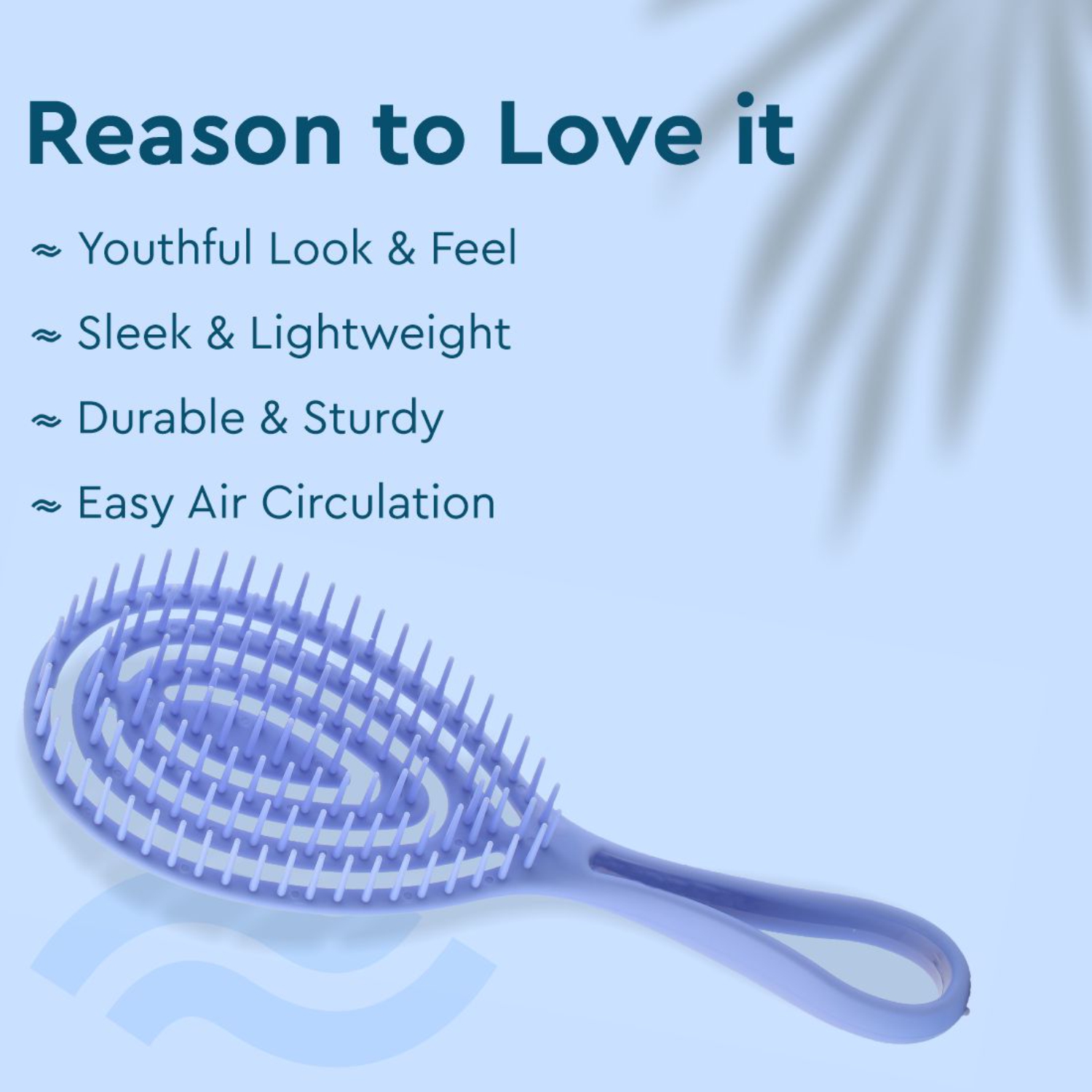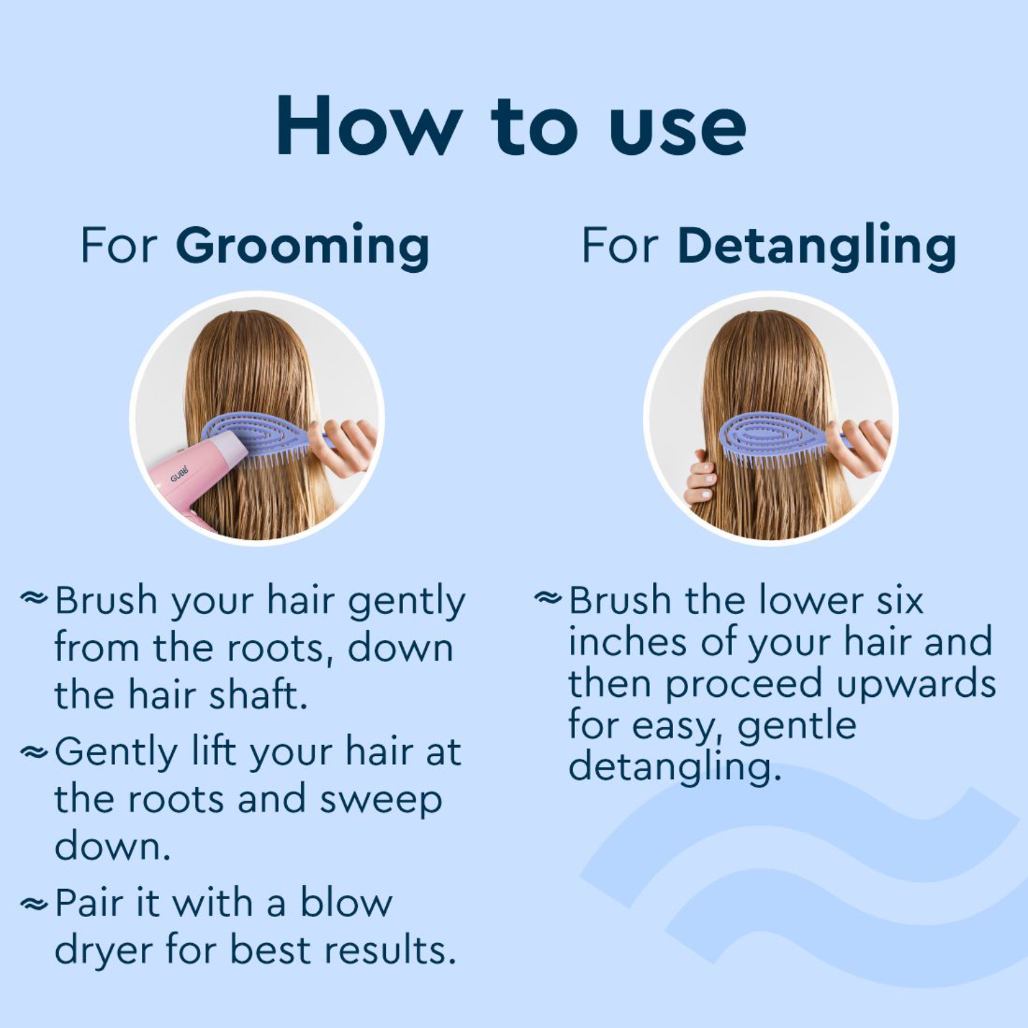 GUBB Oval Hair Brush is an ideal tool for all hair types and textures. It has ultra-soft flexible bristles that glide through tangles and knots with ease. The cushion base massages your scalp and acts like a mini shock absorber for stress free brushing. Ball tipped bristles will not snag or pull hair while you detangle and style. The arrangement of long and short bristles ensures the detangling process is pain-free and frizz-free. This detangler is waterproof, hair treatment chemical proof and oil-proof and easily cleanable and washable. This wide headed brush is designed to gently detangle wet or dry hair.