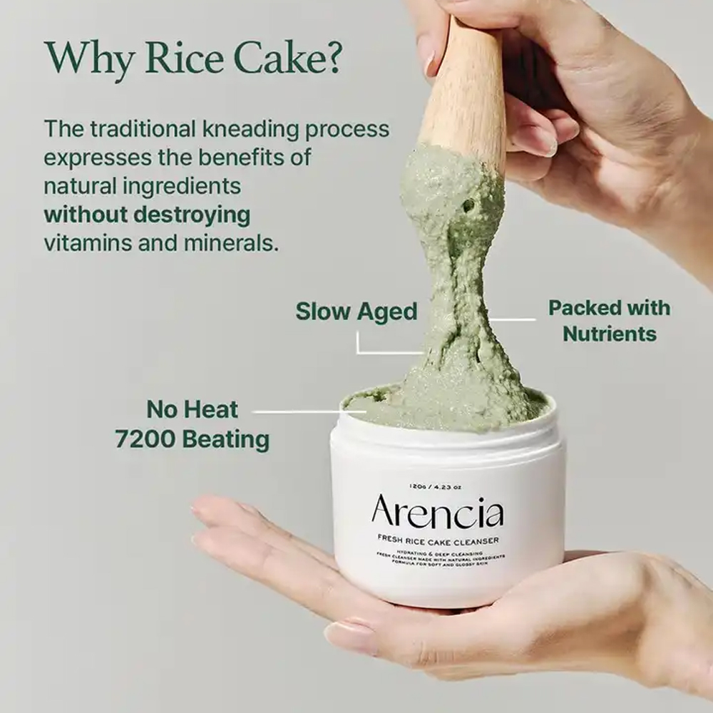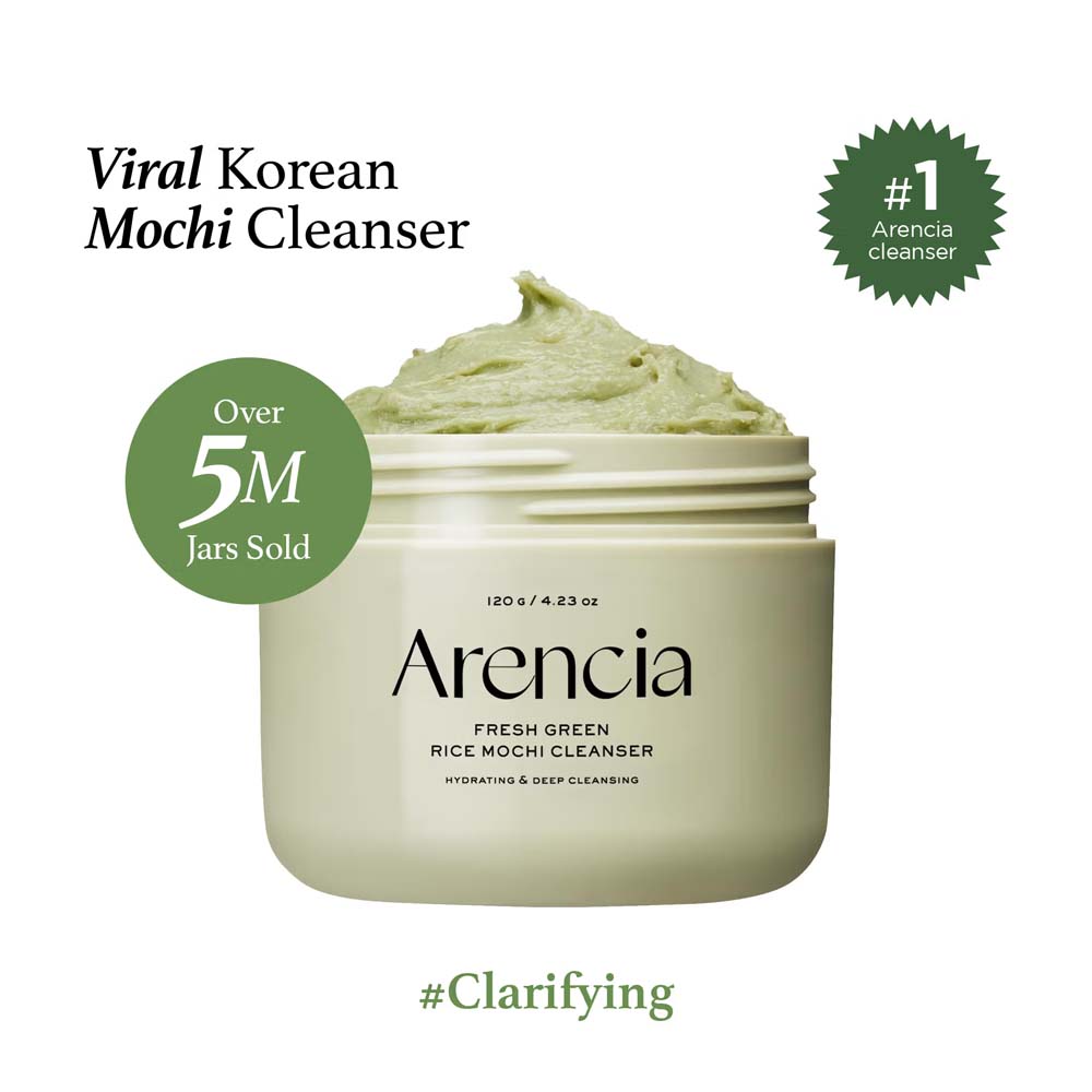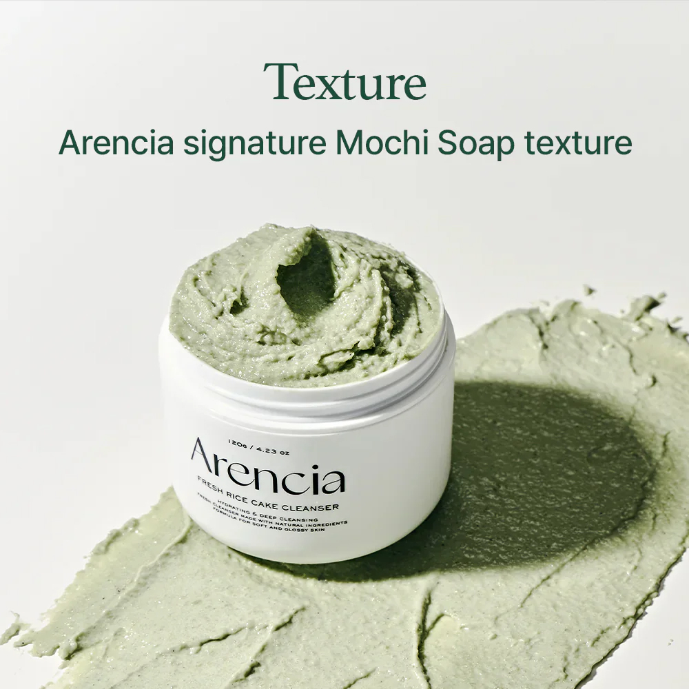 Arencia Fresh Green Rice Mochi Cleanser is a soft, mochi-textured facial cleanser designed to deeply purify the skin while maintaining its natural moisture balance. Enriched with rice powder and rice extract, it gently exfoliates dead skin cells and helps brighten dull skin, leaving the complexion smoother and more refined. Green tea extract provides soothing and antioxidant benefits, helping to calm irritation and control excess oil for a healthier-looking skin barrier. The unique stretchy mochi formula transforms into a creamy foam that effectively removes dirt, excess sebum, and daily impurities without stripping the skin. Its mild yet effective cleansing action makes it suitable for daily use, leaving the skin clean, soft, and refreshed after every wash. The cleanser can also be used as a quick wash-off mask for deeper pore care and smoother skin texture. Perfect for normal, combination, and oily skin types, this cleanser helps maintain clear, balanced, and radiant skin with every use.