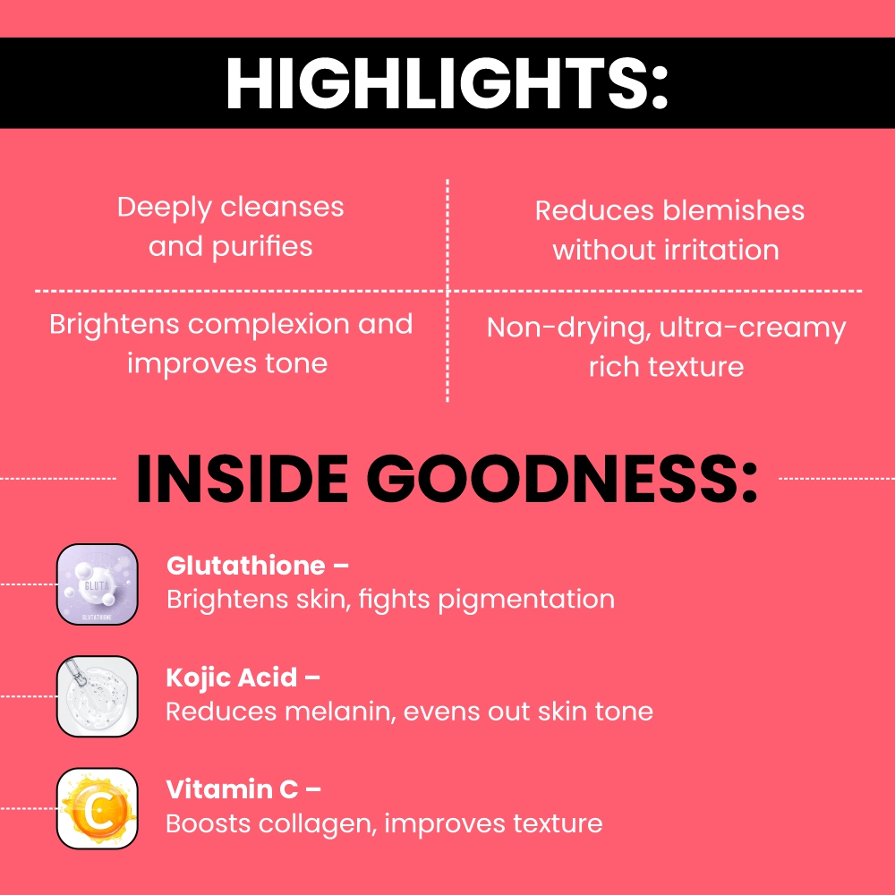Glutathione,Kojic Acid,Vitamin C,Vitamin E,Liquorice,Nicotinamide,Glycolic Acid,Triclosan,D- Panthenol