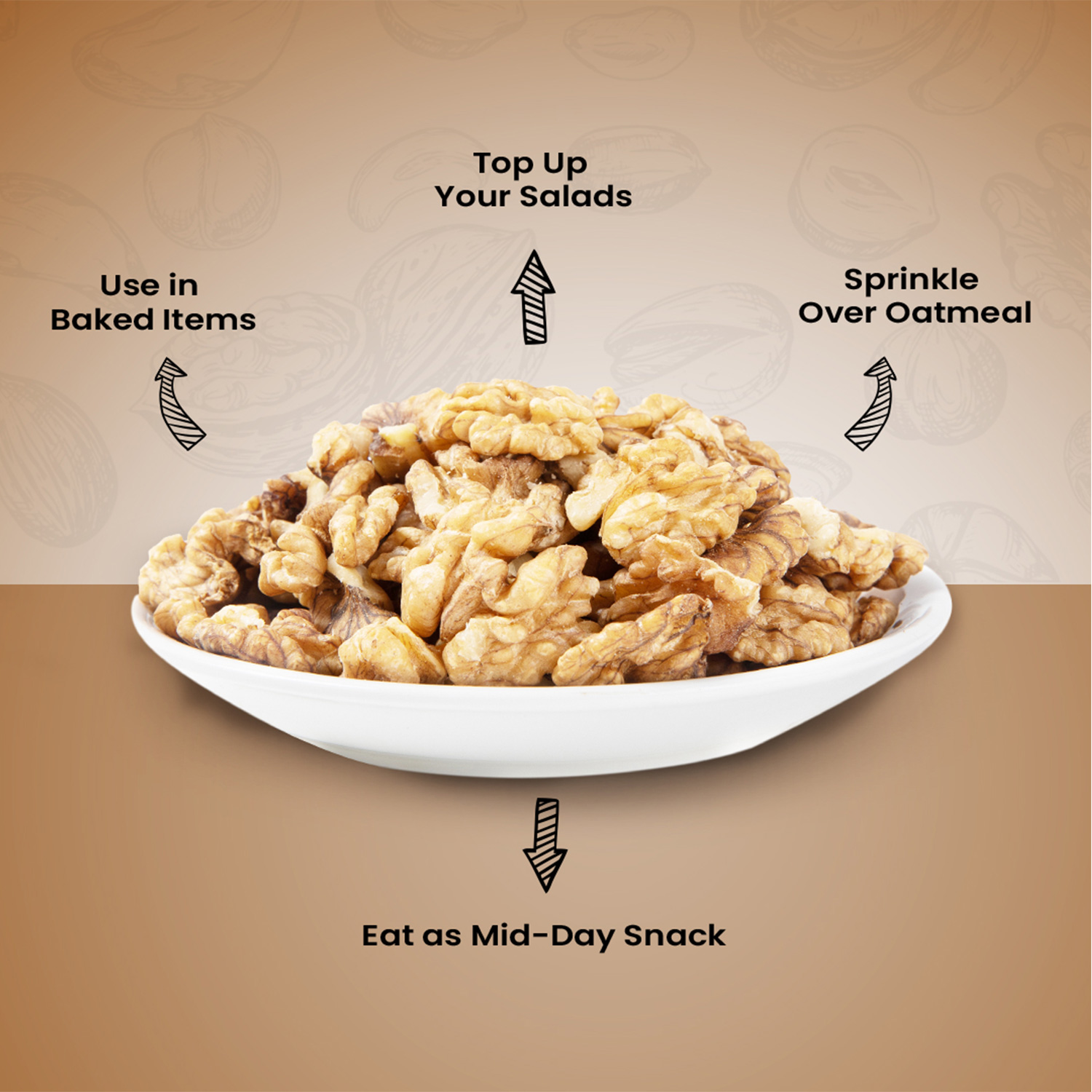 The Nutraj Walnuts kernels (Akhort) are the best Healthy Snack that not only has a better flavor, freshness and better color, it also has immense health benefits compared to other types of Walnuts. They are plant based, purely vegetarian and do not contain any GMO. Walnuts (Akhort) are good for the skin as they are packed with vitamin B. You can go solo snacking on these tasty and crunchy walnuts being guilt free knowing their health benefits.