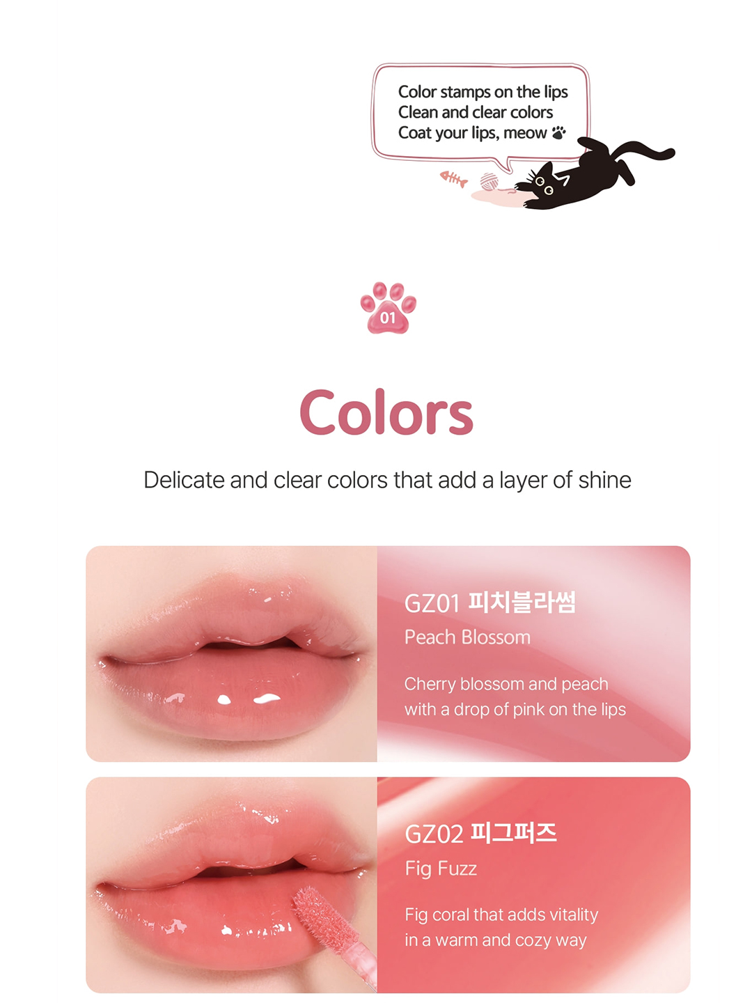 High-pigmented color, glowing glossy effect and Long-lasting