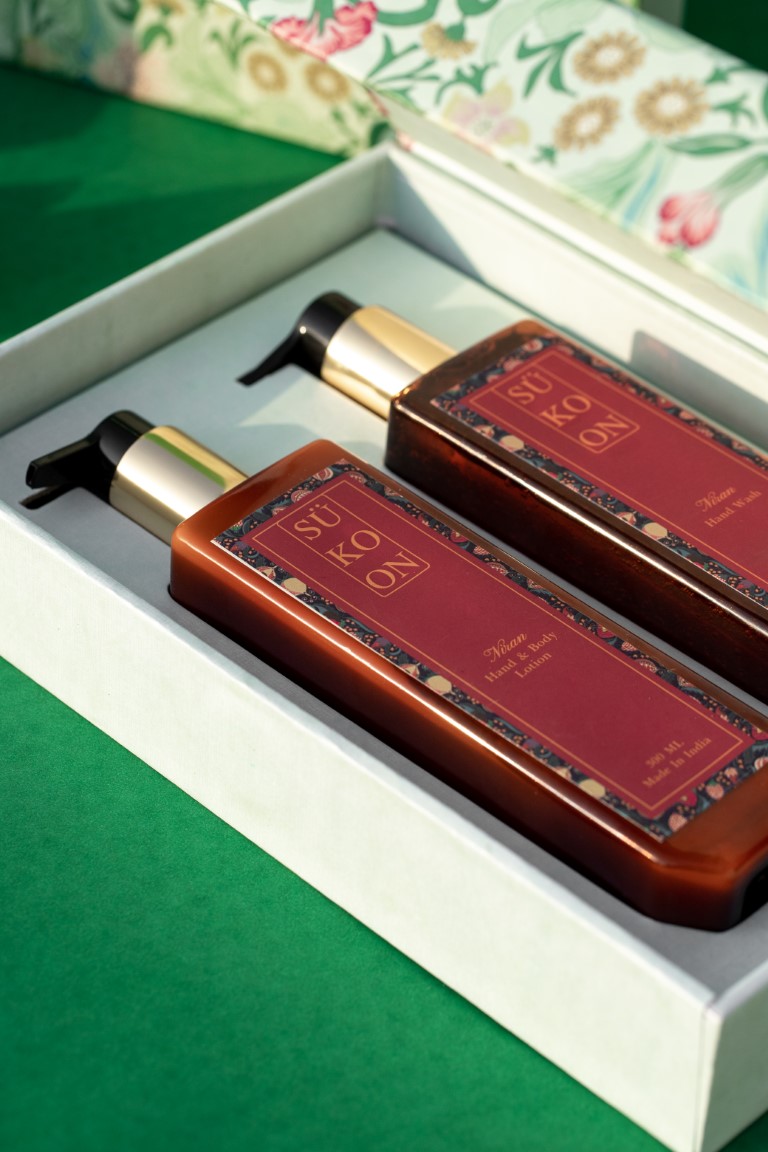 Discover Sukoons collection of hand wash and lotions with the personal care gift set. Made in India, using the most natural ingredients, each product has been created with sensitive and delicate personal care in mind, packed in a charming sukoon case.