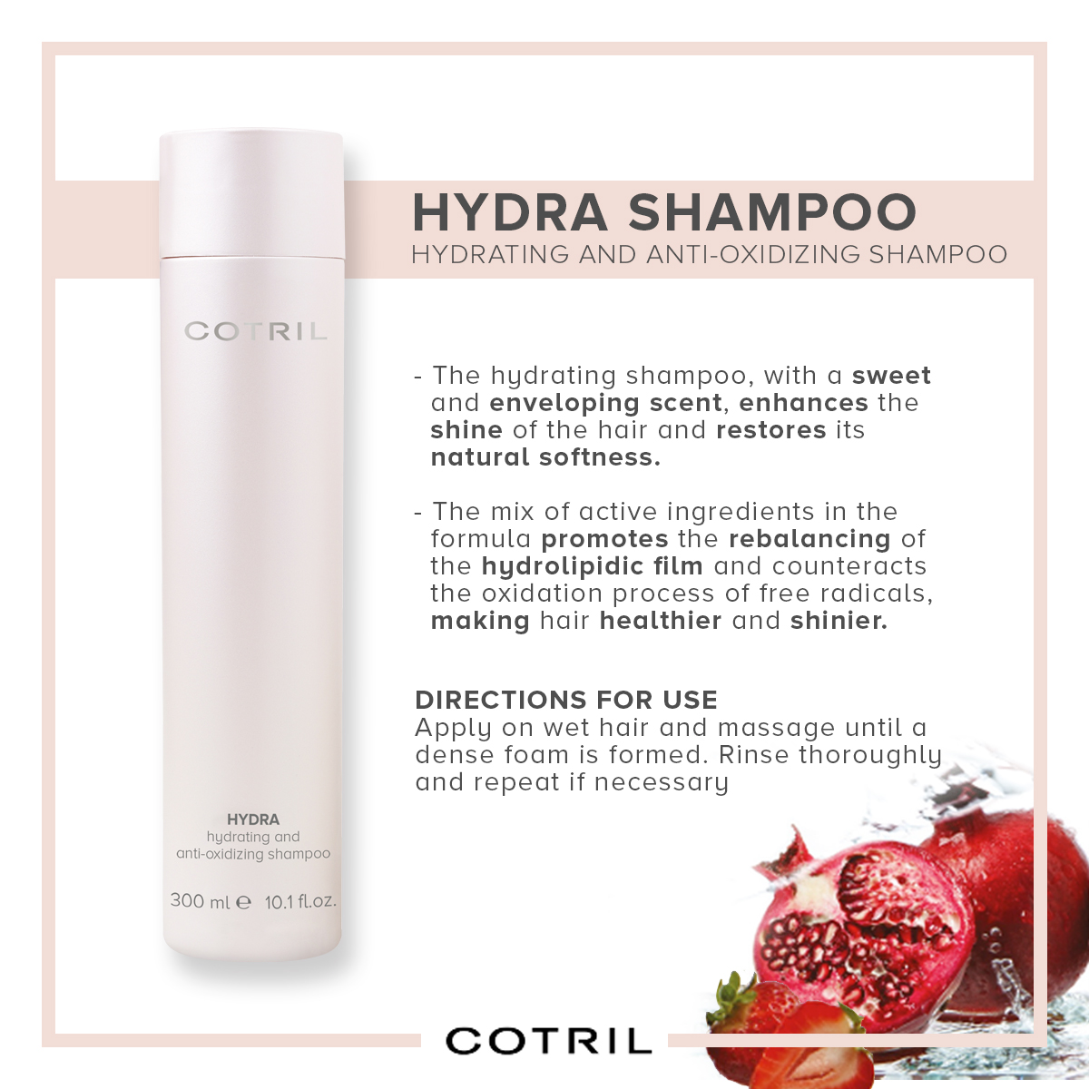 1. Apply on wet hair and massage until a dense foam is formed.2. Rinse thoroughly and repeat operation if needed.
