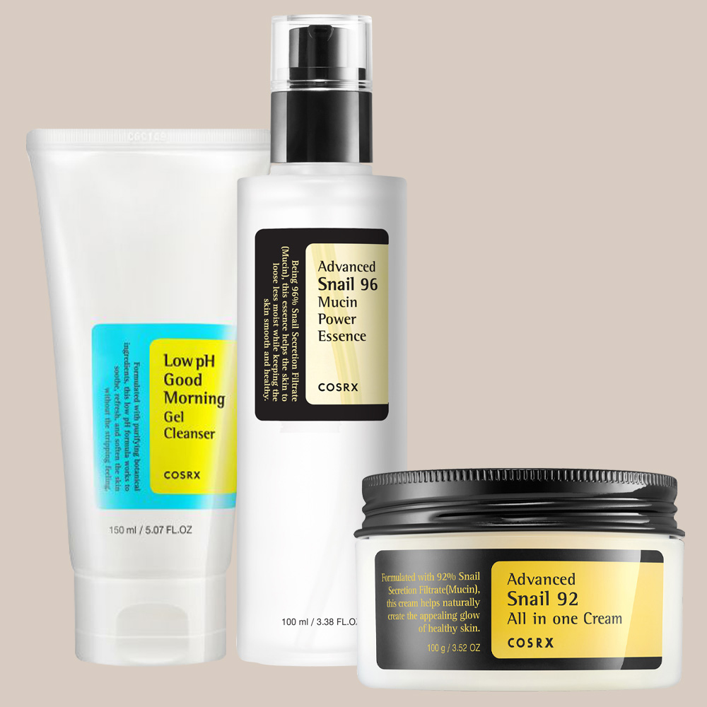 A complete daily routine powered by COSRXs best-selling low-pH cleanser and advanced snail mucin formulas. Designed for deep hydration, skin barrier repair, and a smooth, healthy glow.