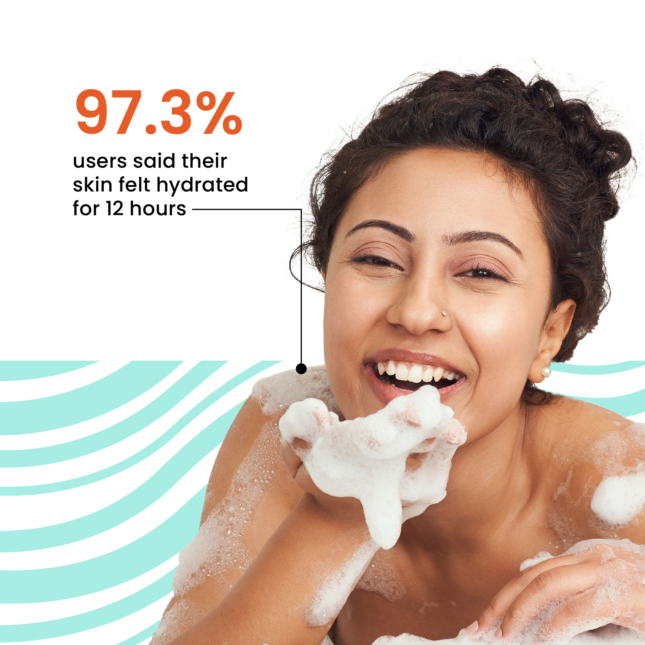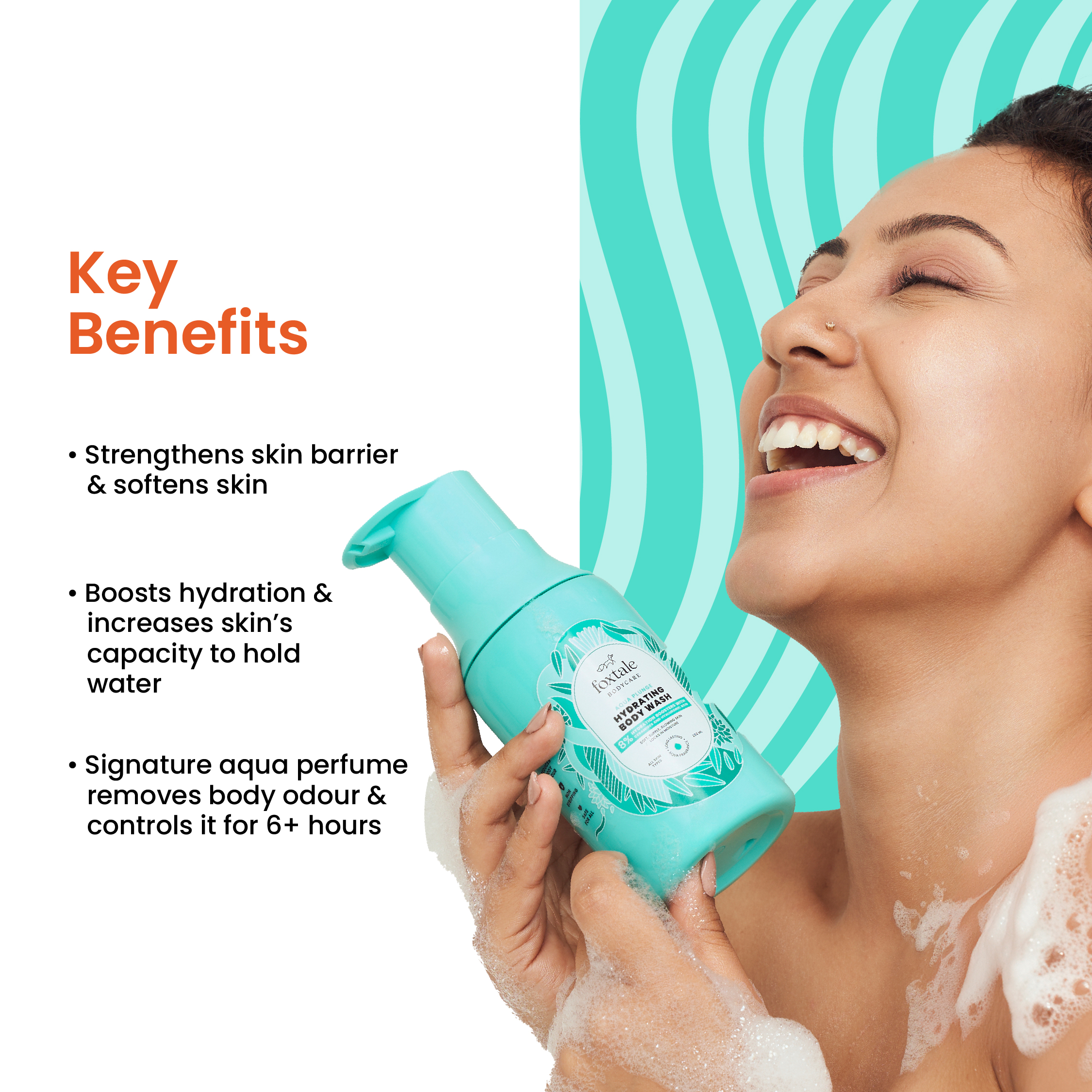 This active-infused body wash adds hydration to the skin while cleansing it, and controls body odour for 6+ hours. It delivers 24-hour hydration, strengthens skin barrier and soothes it, covering you in an aqua perfume. It truly works like skincare, wears like perfume.